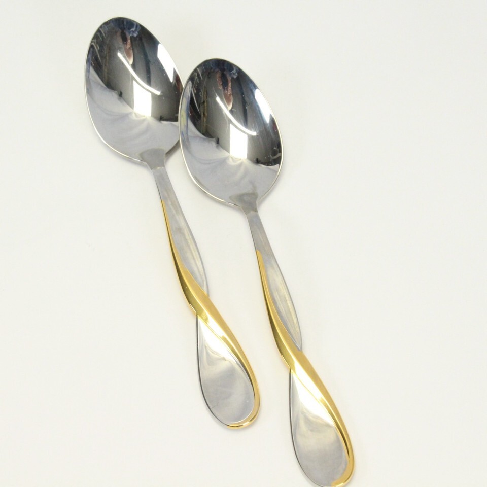Oneida Golden Aquarius Oval Soup Spoons 7" Stainless Lot of 2