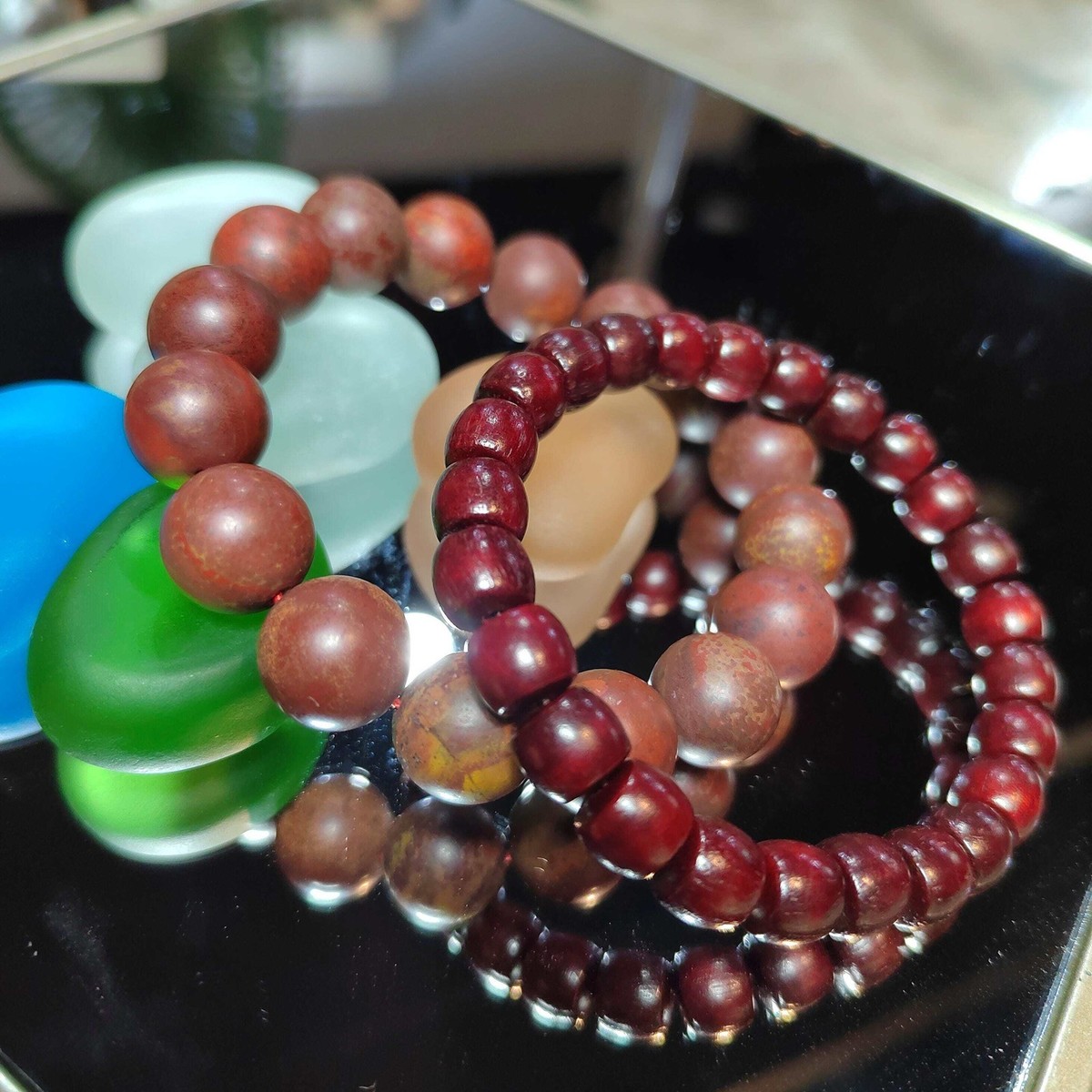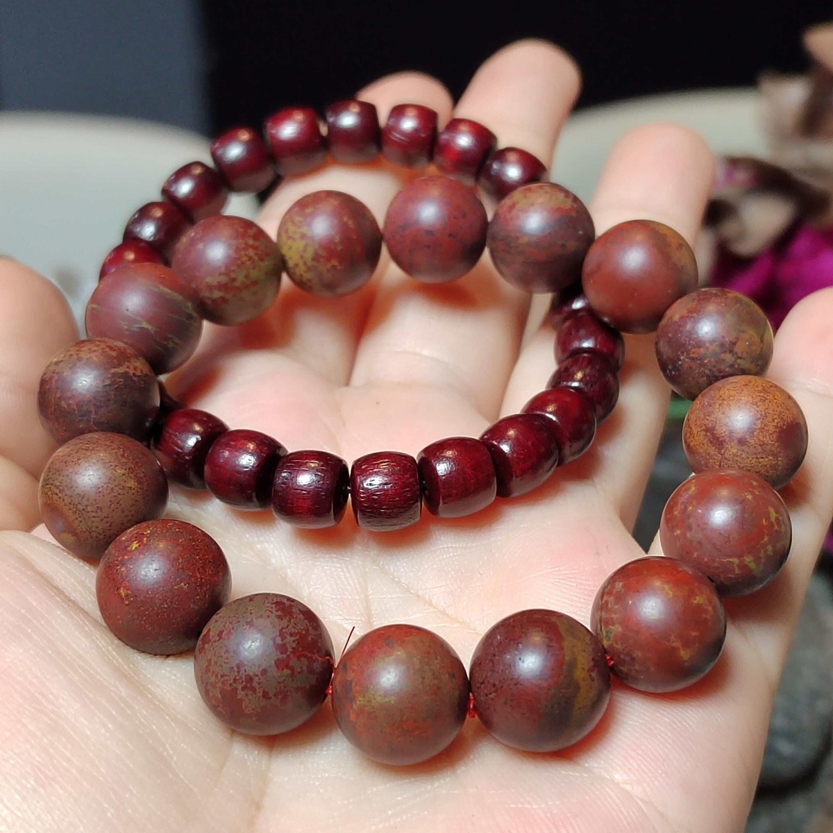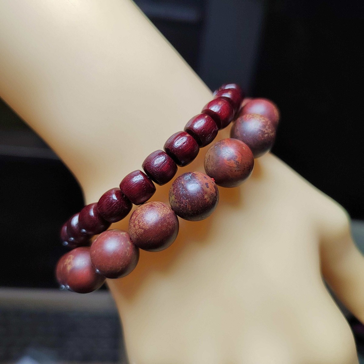 ? Certified Wujia Red Agate Blood Sandalwood 2-Piece Bracelet Set Panwan-Ready Deep Earth Energy 16cm WristThis elegant 2-piece bracelet set combines the grounding energy of certified Wujia South Red Agate with the warm, aromatic beauty of natural Blood Sandalwood. Designed for collectors, healers, and everyday wearers, each bracelet evolves with time through the art of ?? (panwan)?a slow, natural polish formed by daily touch and wear.? Bracelet 1: Certified Wujia Red AgateCrafted from dense, fine-grained old-mine agate, this bracelet features 16 beads measuring 12.4?12.7 mm and weighing approximately 45.85g. Known for its deep reddish tones and earthy mineral texture, Wujia agate develops a soft glow and smooth patina over time.? Certified natural and untreated? Promotes circulation, vitality, and emotional grounding? Encourages clarity, focus, and resilience? Benefits of Wujia Agate? Supports healthy energy flow? Grounds emotions and calms restlessness? Strengthens inner vitality? Enhances mental clarity and focus? Bracelet 2: Blood Sandalwood (Uncertified)This complementary bracelet features 25 barrel-shaped beads (~6.9 8.2 mm) made from natural Blood Sandalwood. Prized for its rich tone, smooth texture, and subtle aroma, it?s often used in meditation and wellness traditions.? Adds warmth and balance to stone-based jewelry? Naturally aromatic and calming? Complements the panwan process with evolving texture? The Art of Panwan (??)Both stone and wood absorb your skin?s natural oils, gradually becoming smoother, deeper in color, and warmer to the touch. This evolving luster, known as ?? (Baojiang), makes each bracelet uniquely yours.? What?s Included? 1x Certified Wujia Red Agate Bracelet? 1x Blood Sandalwood Bracelet (Uncertified)? Official Certificate (Agate only)? Elegant Jewelry Box Protective Pouch? Cleaning Cloth + Bead Oil? Zip-Lock Storage Bag? ?? Free Worldwide Shipping with Tracking? A Set with SoulWhether worn for grounding energy, spiritual connection, or aesthetic beauty, this bracelet set offers a meaningful journey in stone and wood. It?s a thoughtful gift for yourself or someone special?designed to evolve, connect, and inspire.? Care Instructions? Avoid chemicals: keep away from perfumes, hairsprays, and harsh cleaning agents? Store properly: use the included jewelry box or pouch to prevent scratches and dust? Clean gently: wipe with a soft cloth; avoid abrasive materials? Wear with care: remove during strenuous activities or swimming? Maintain naturally: allow oils from your skin to enhance the bracelet?s patina over time