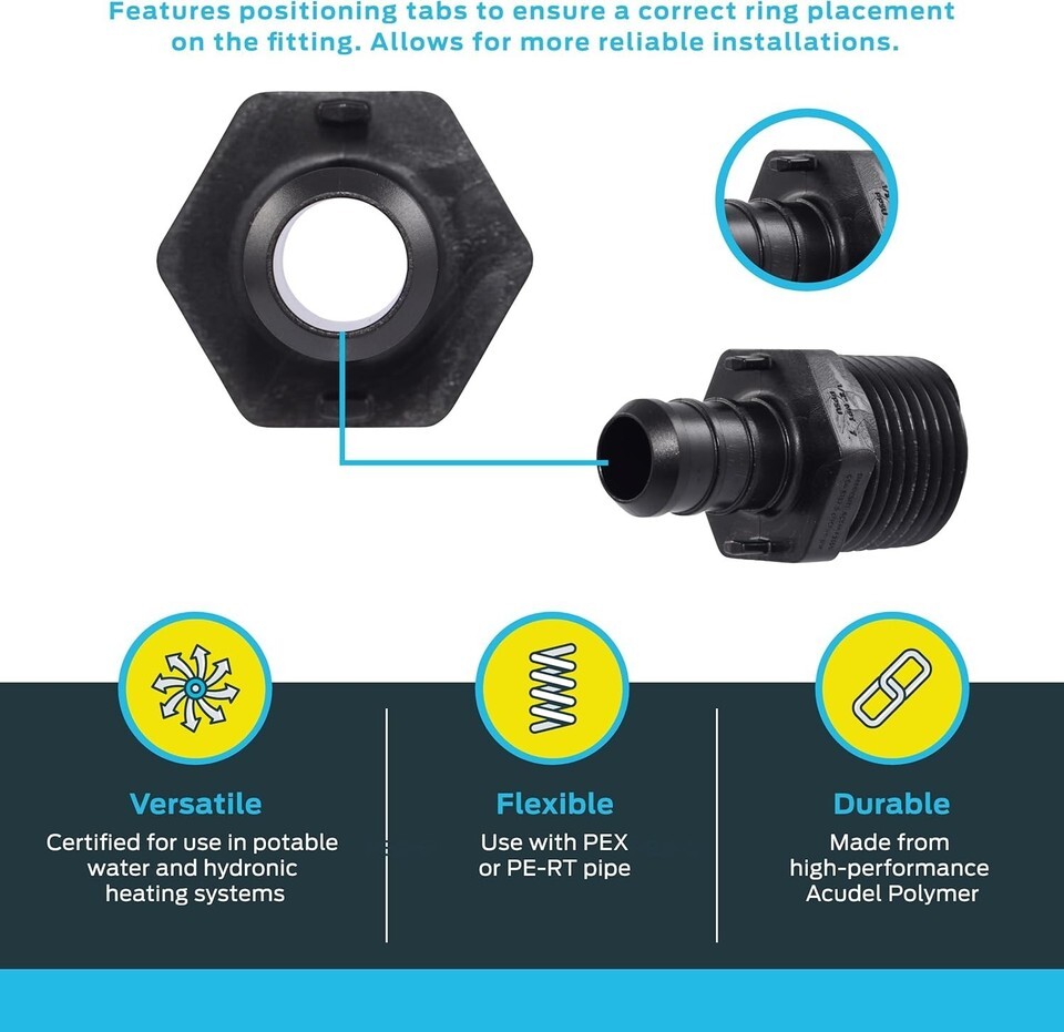 - Compatible with all standard PEX-A, PEX-B, and PEX-C tubing