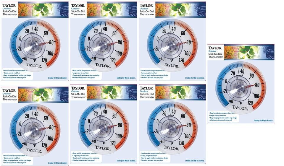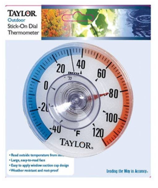 Window Suction-Cup Thermometer 3.5", Outdoor Stick-On Dial, -40 To 120 F - Taylor 5321N (7-PACK)