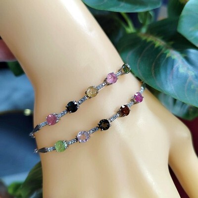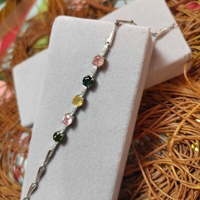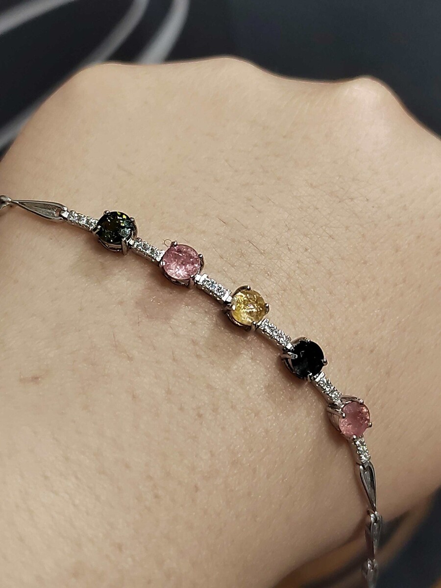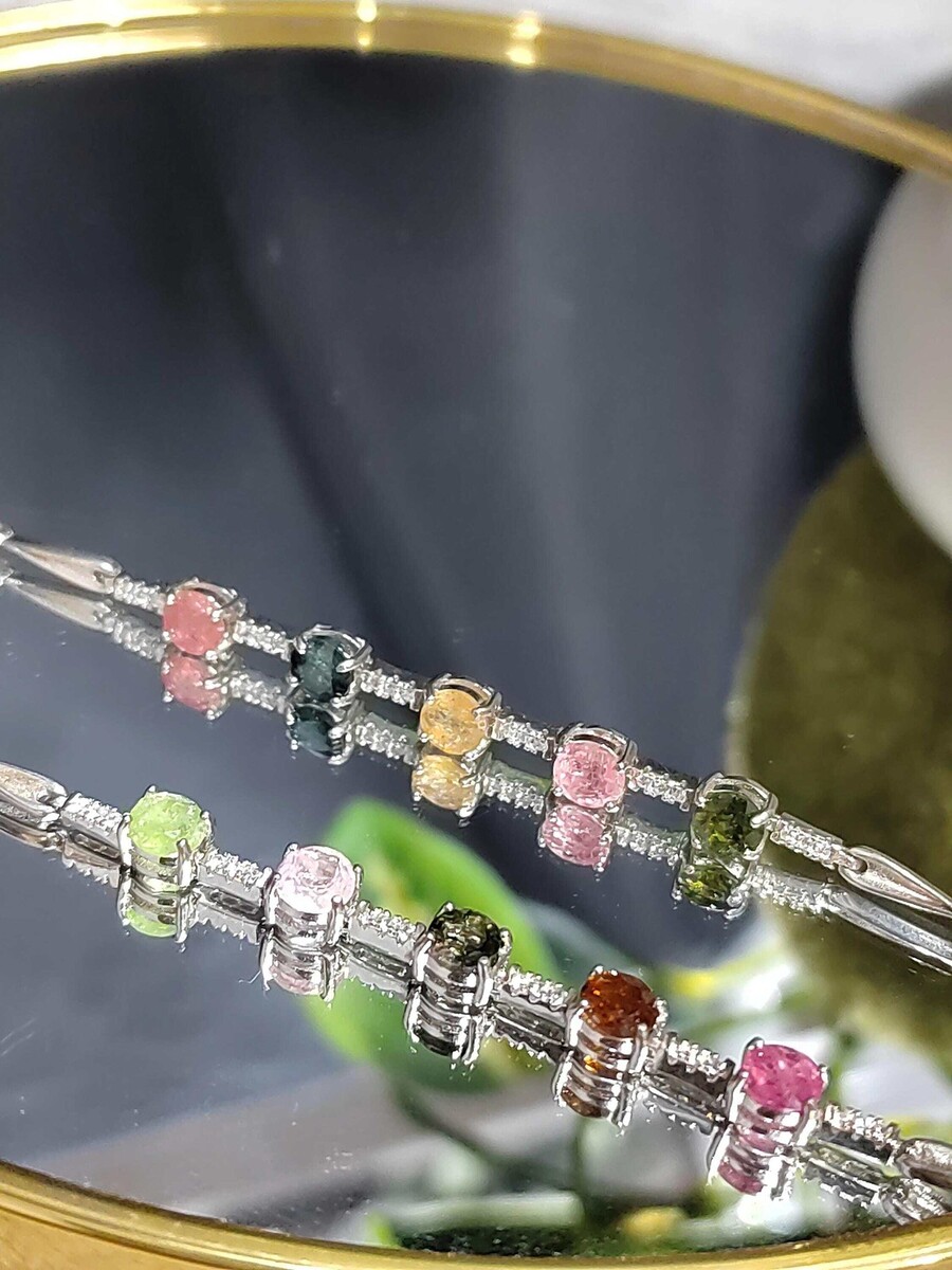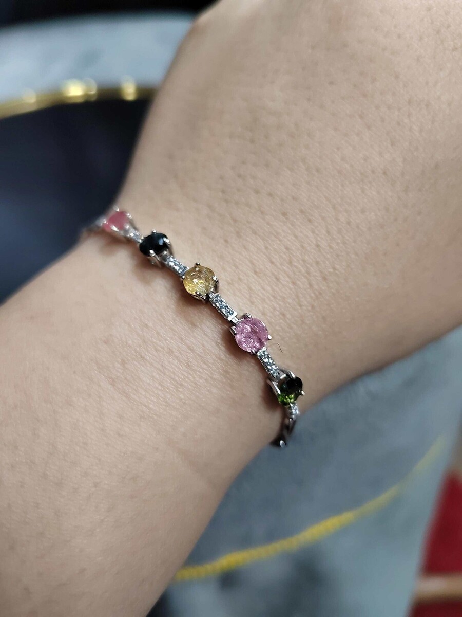 Add a splash of vibrant elegance to your jewelry collection with this stunning Certified Tourmaline Bead Bracelet. Featuring four distinct hues of natural tourmaline, each bead is carefully selected for its brilliance and energy. Set in S925 sterling silver and accented with sparkling zirconia, this bracelet blends radiant color, fine craftsmanship, and healing symbolism.