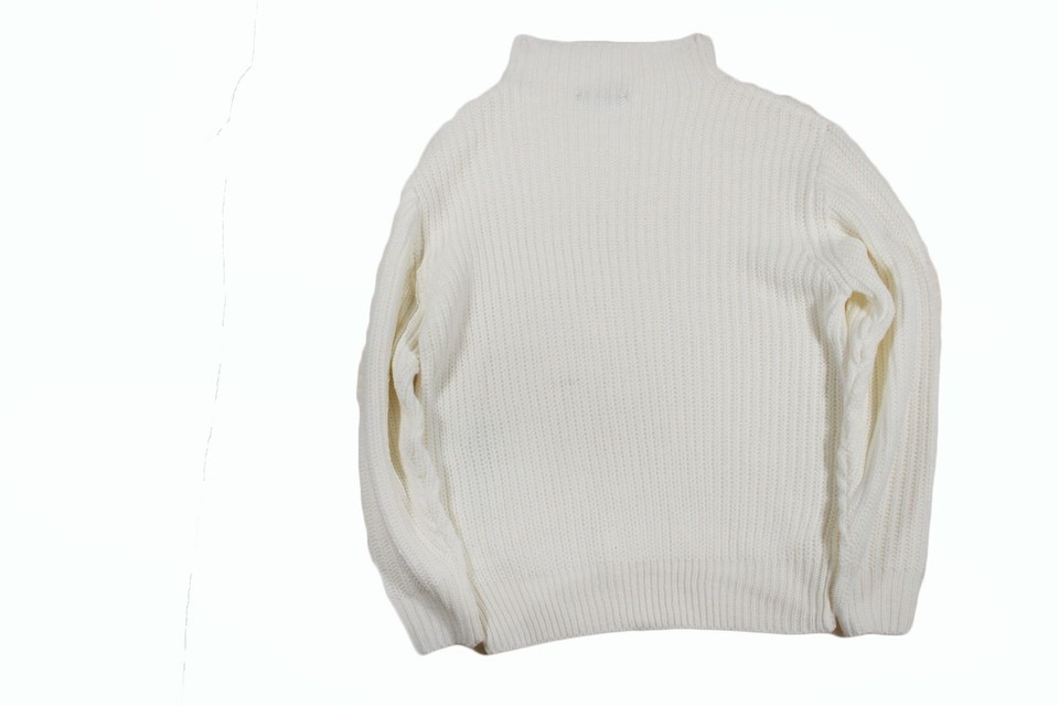 Women Sweater Black Tape Mock-Neck Sweater Size Small Ivory