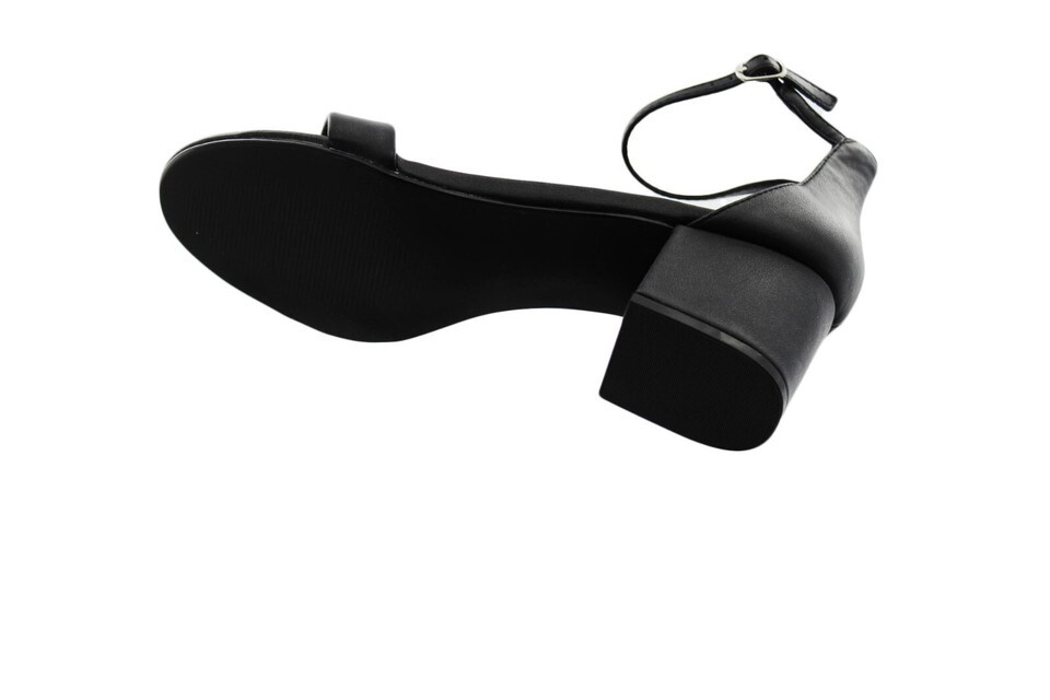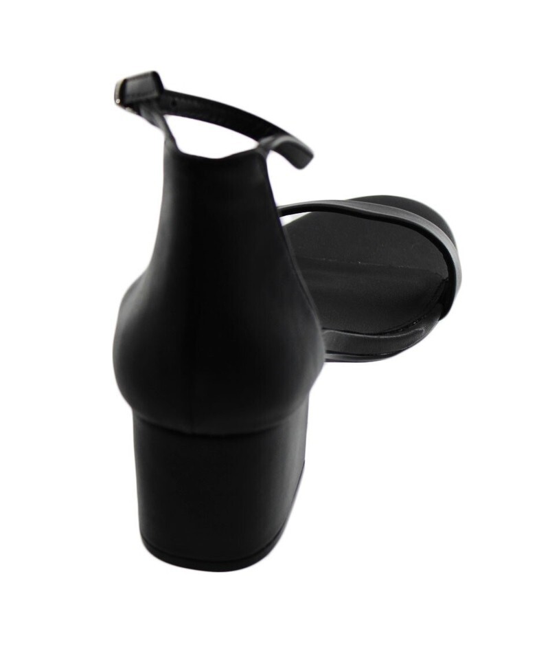 Spare block-heel sandal featuring slim ankle strap with buckle closure