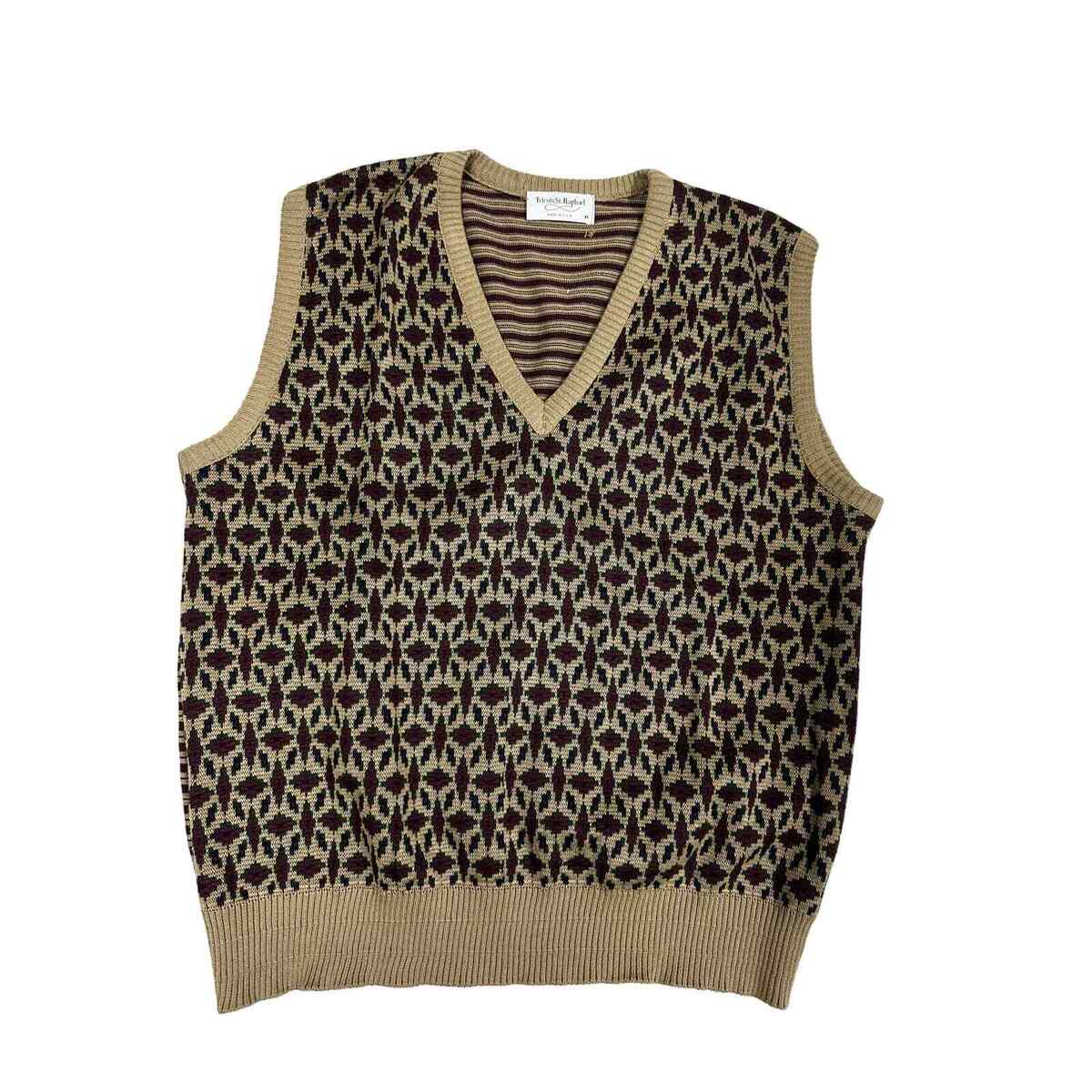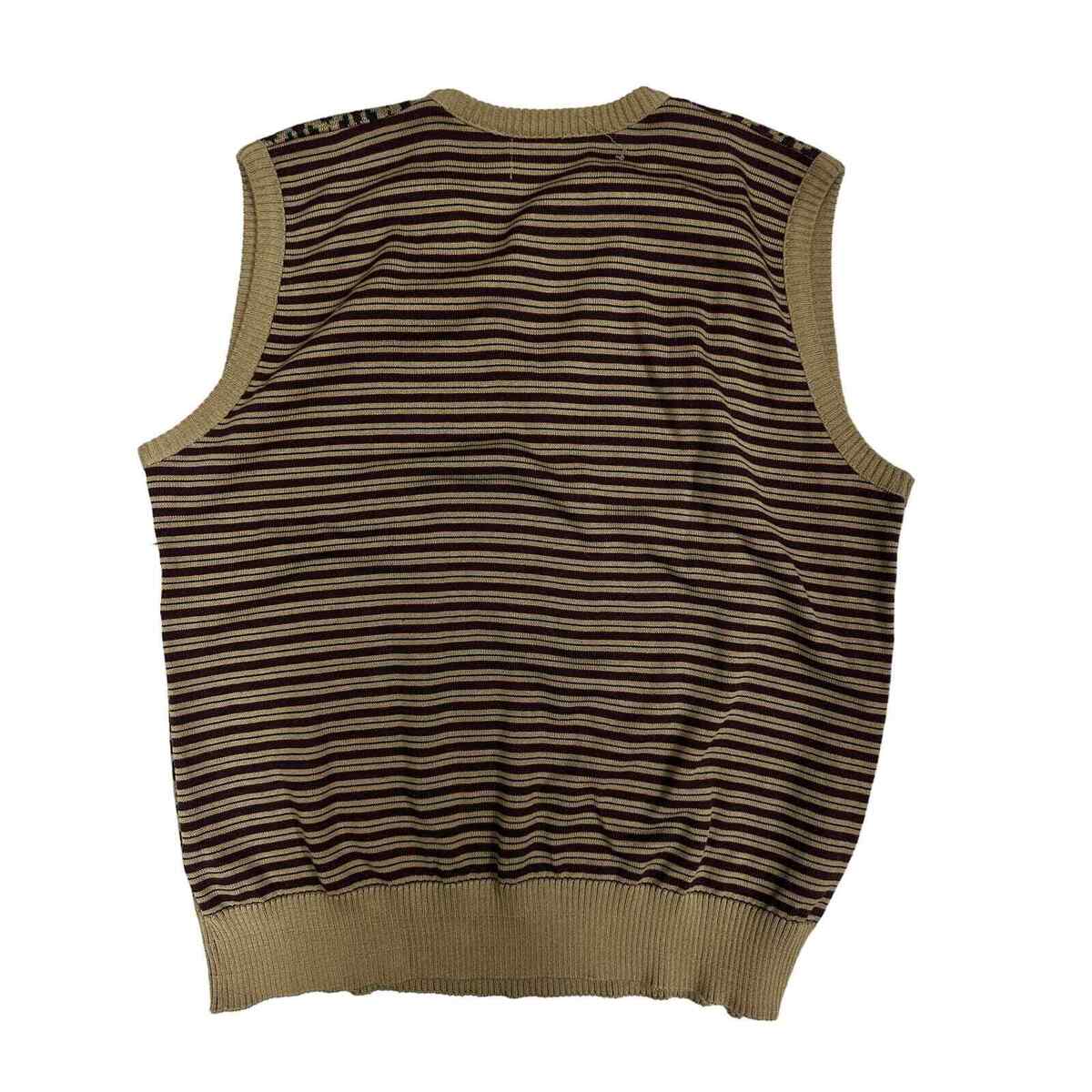 Vintage 80s Tricots St.Raphael Sz M Cotton Vest Tan Maroon Green Stripe Diamond- excellent condition. The sweater is lying in a way that makes it look like it has a giant stain, but it is perfect?all cotton.