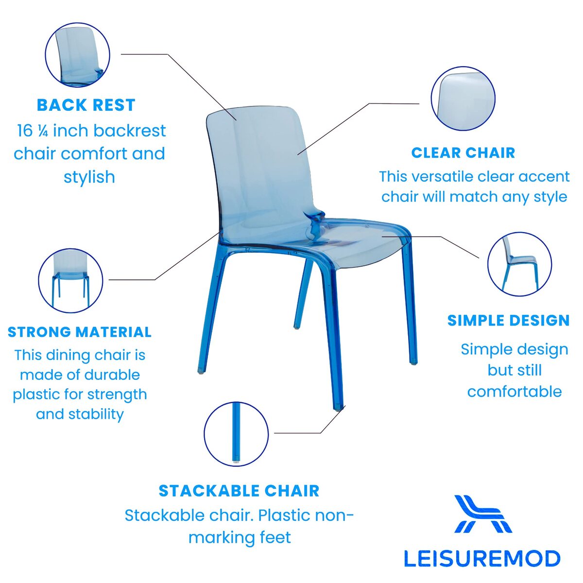 LeisureMod Mid-Century Modern Dining Chair, Acrylic Accent Chair for Kitchen, Di