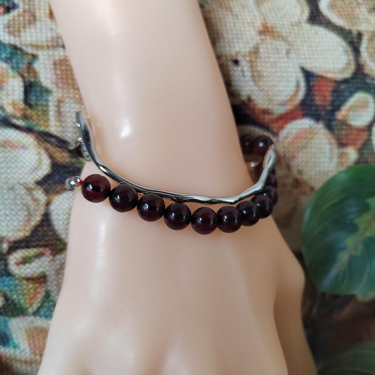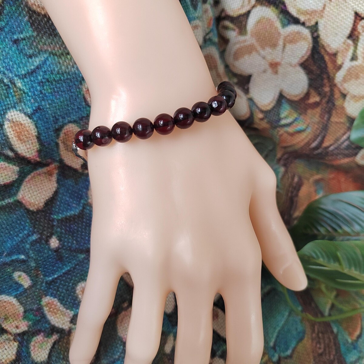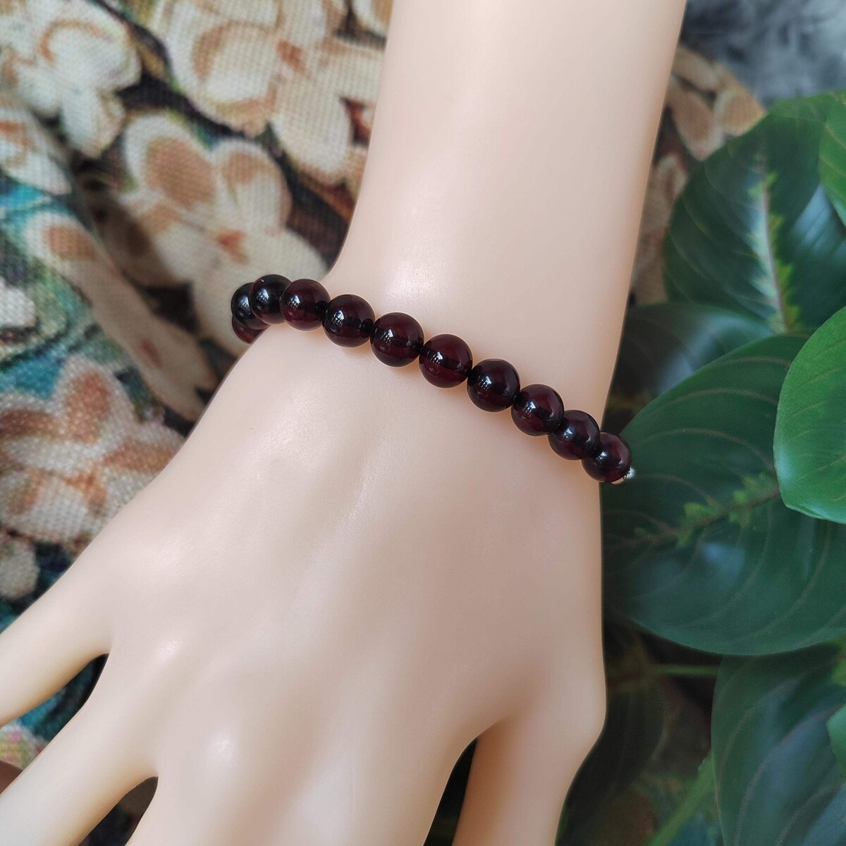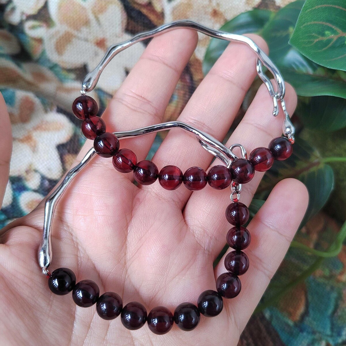 Deep cherry-red color with smooth, round polished beads