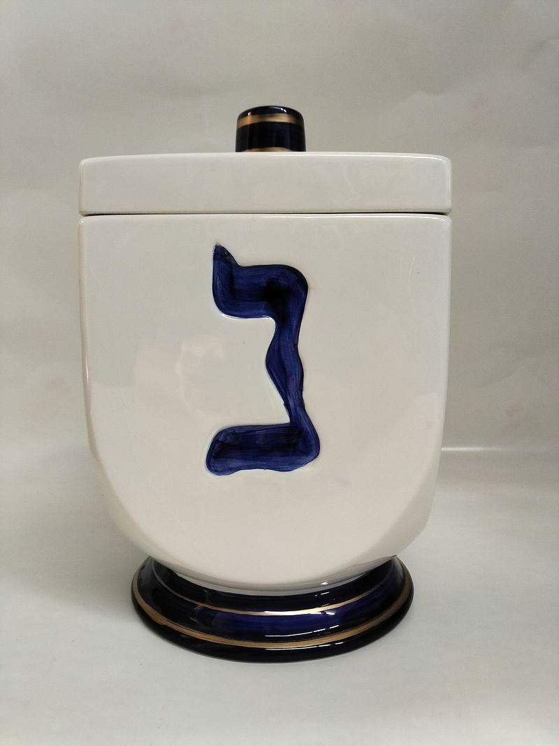 World Bazar Hannukah Dreidel Ceramic Snack Cookie Jar Hebrew Judaica 10"