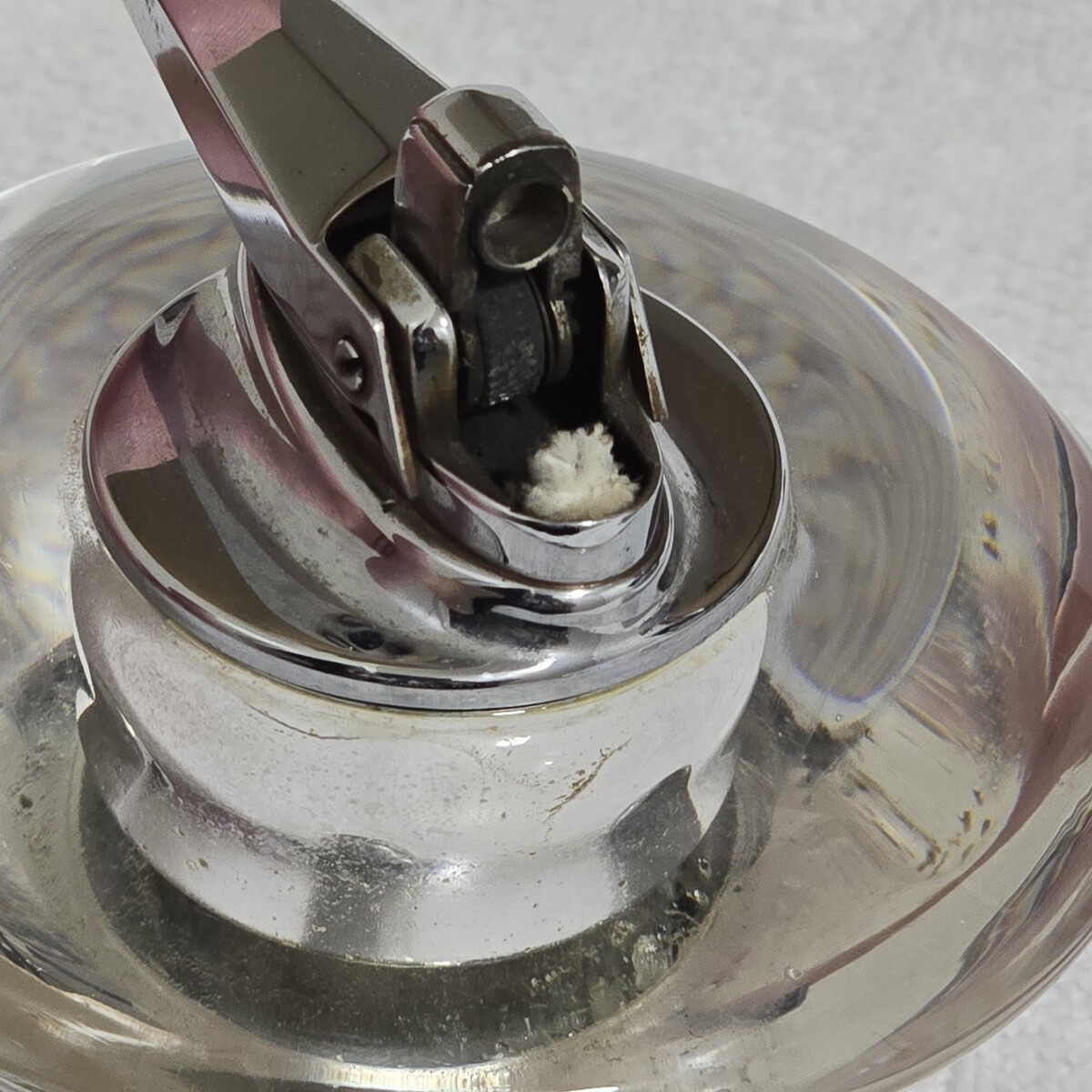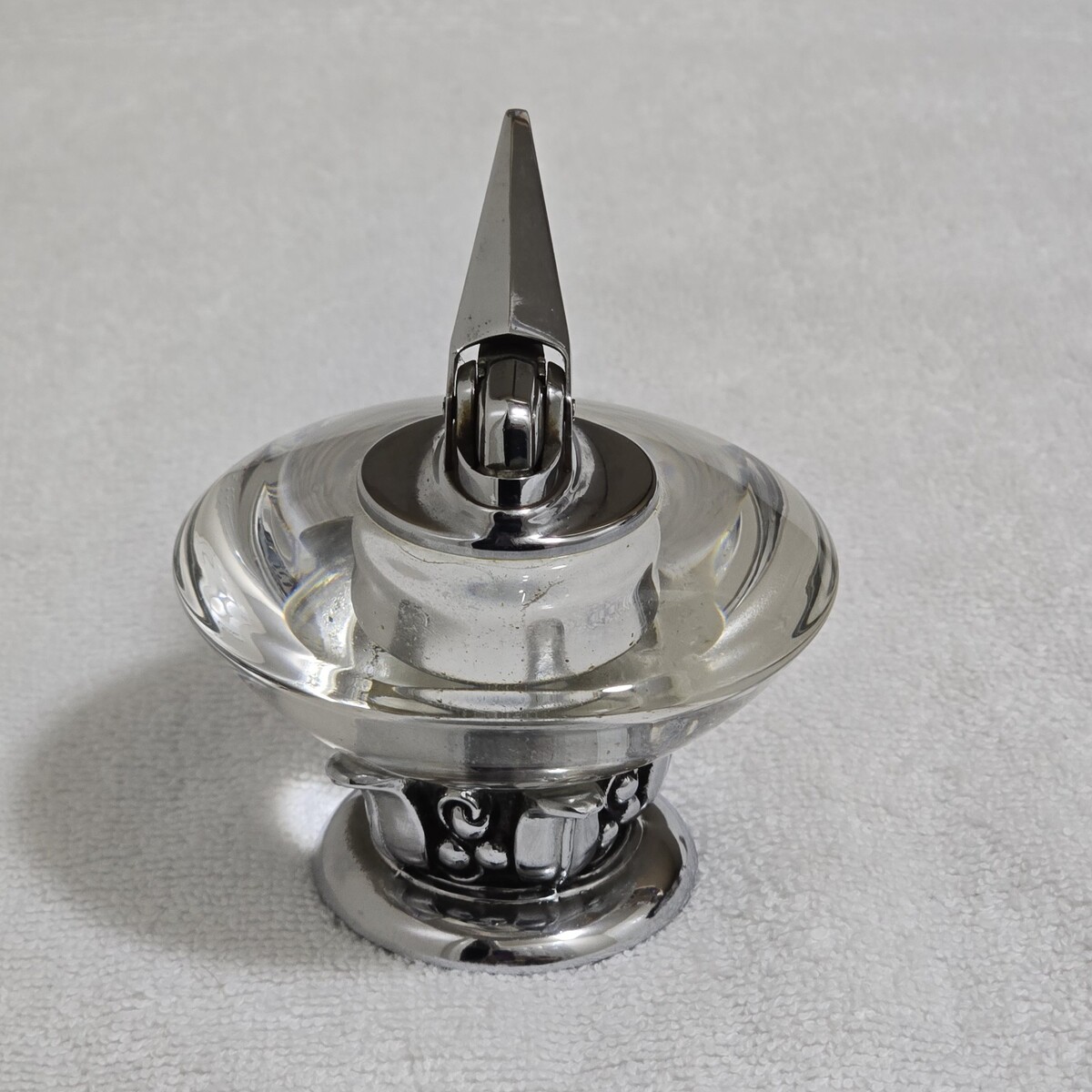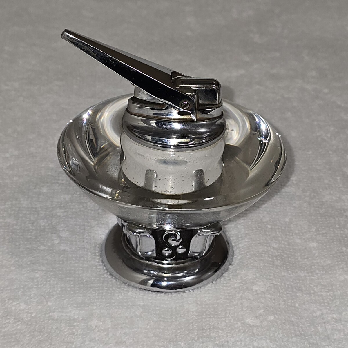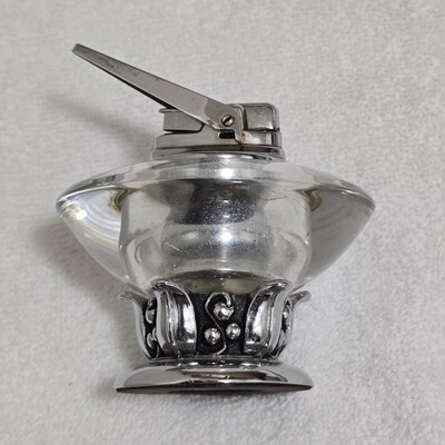 Vintage Ronson Nordic Glass / Chome Base Table Lighter 3.5" High Made In USA