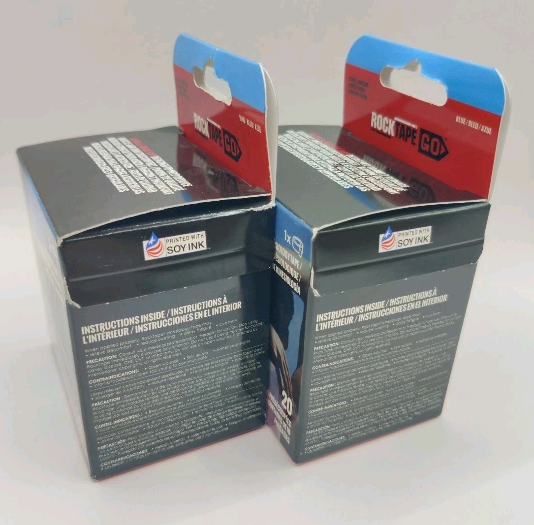 2 RockTape Go 20 Pre-Cut 10 Inch Strips Kinesiology Blue Gentle Adhesive