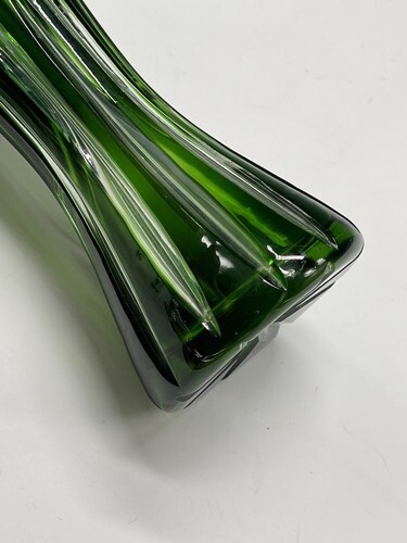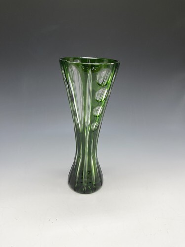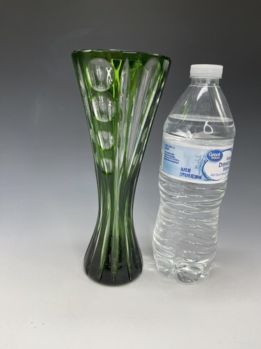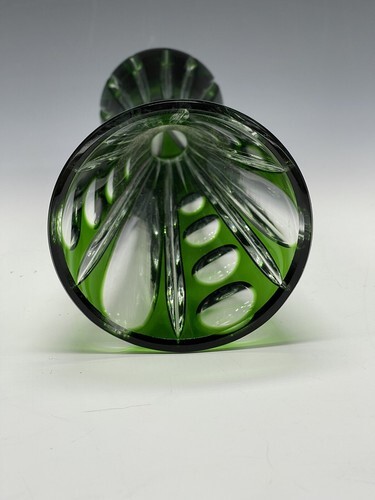 Vintage 8.25" Bohemia Polished Crystal Glass Vase Green Clear Corset.
