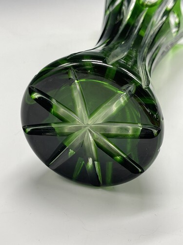 Vintage 8.25" Bohemia Polished Crystal Glass Vase Green Clear Corset