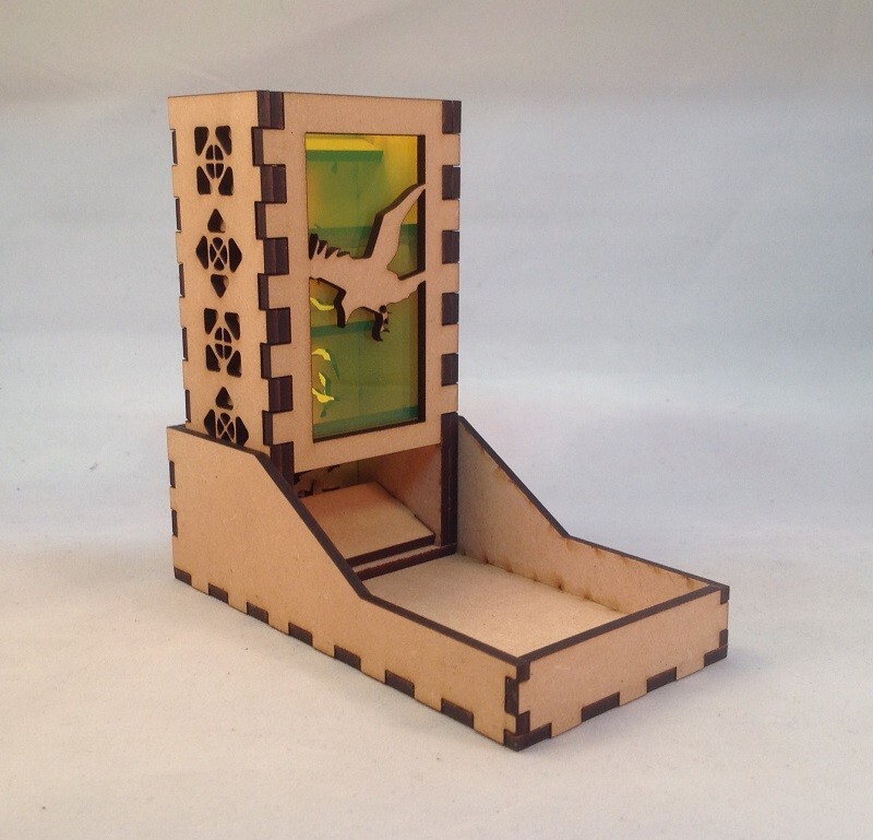 Raven Dice Tower & Tray Neon Yellow Acrylic Window COMPACT DESIGN Laser Cut MDF
