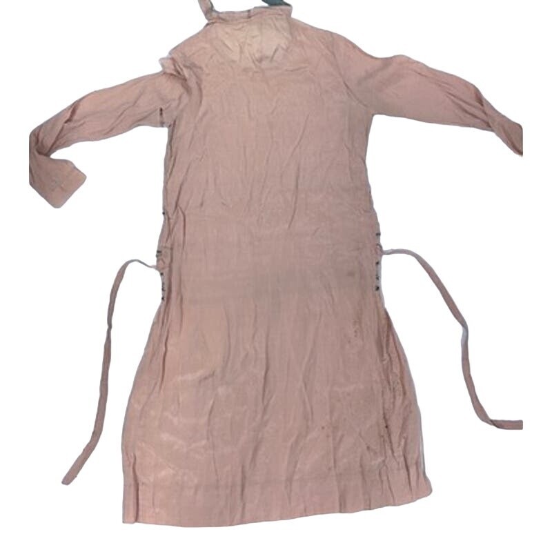 Provenance Note: Dresses of this era, especially in pongee silk, reflect the popularity of lightweight silks imported from China and adapted into fashionable Western dressmaking. While this example is damaged, it still offers value for study of early 20th-century garment construction and textile use. Collectors, costumers, and designers often seek such pieces for fabric salvage, pattern replication, or inspiration.