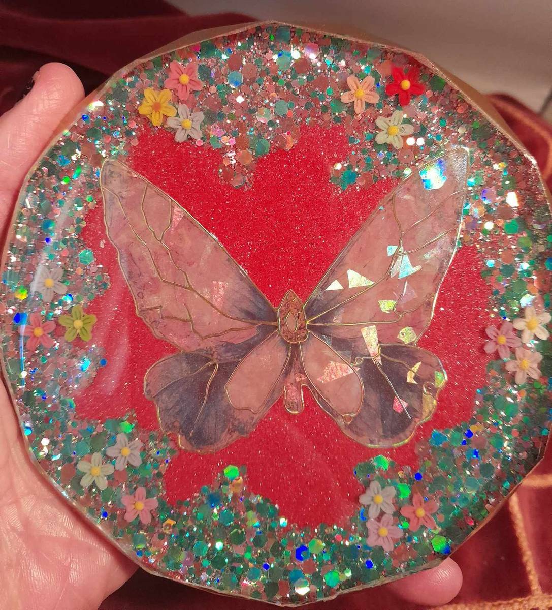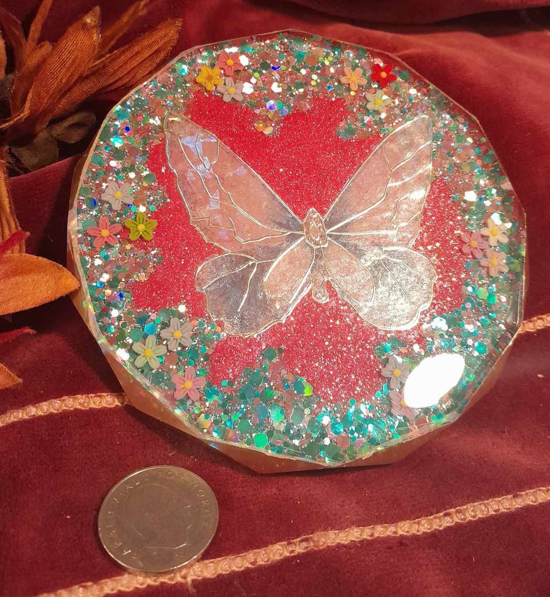 Stunning Glittery Bliss BUTTERFLY Unique Mixed Media Large Coaster Desk Bedside