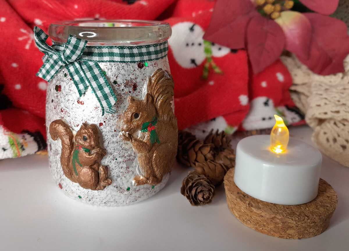 Winter Squirrels Little Twinkler Glass Jar Christmas Holiday Tea Light Home Deco