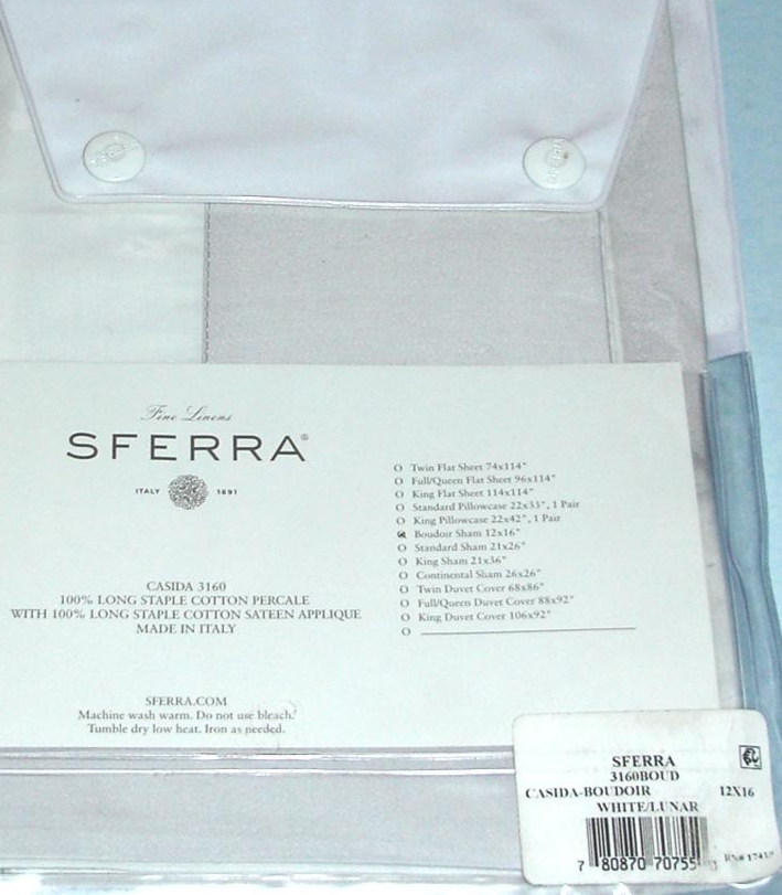 Sferra Casida Boudoir Sham Percale White/Lunar Cotton Sateen Appliqué Border New