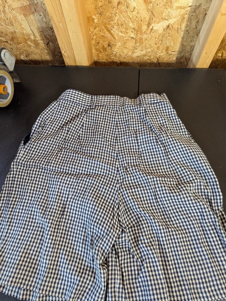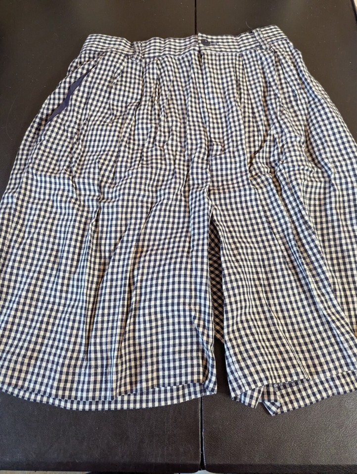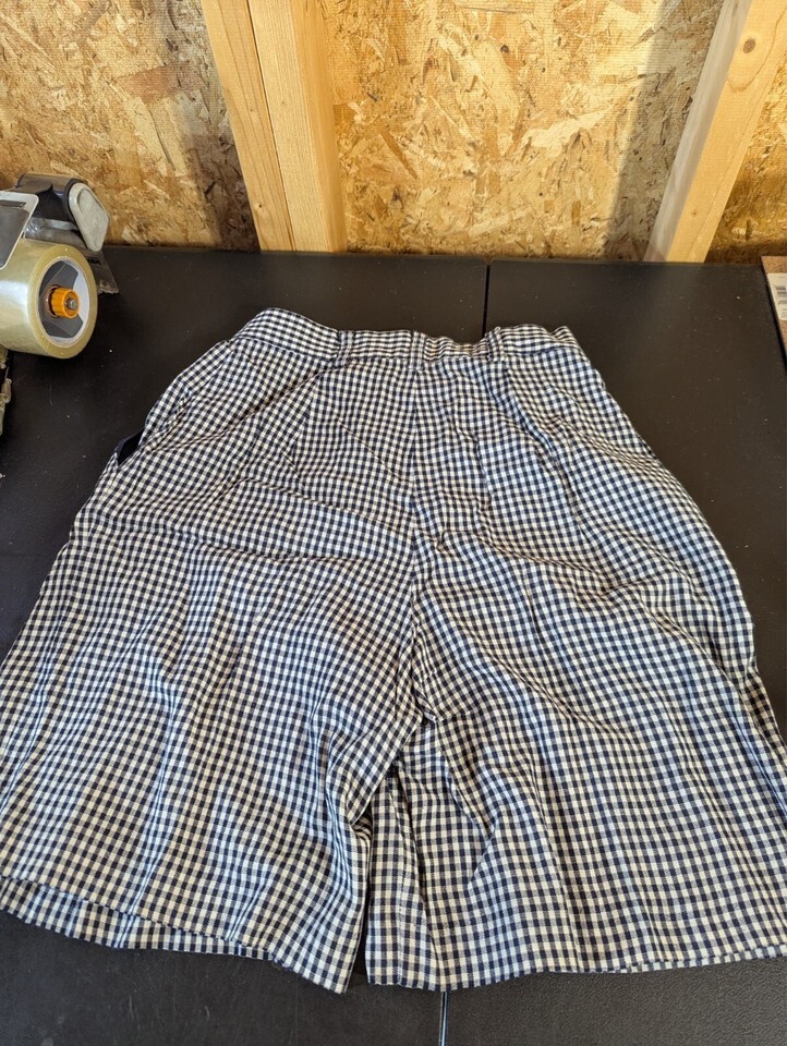 Casual Corner black and white plaid rayon shorts in size 8 feature a pleated front with a button closure. Made of 100% rayon, these shorts have a colorful design and slash pockets. They are suitable for summer, fall, and spring seasons and should be dry cleaned only. The brand is Casual Corner, and the shorts are from China.