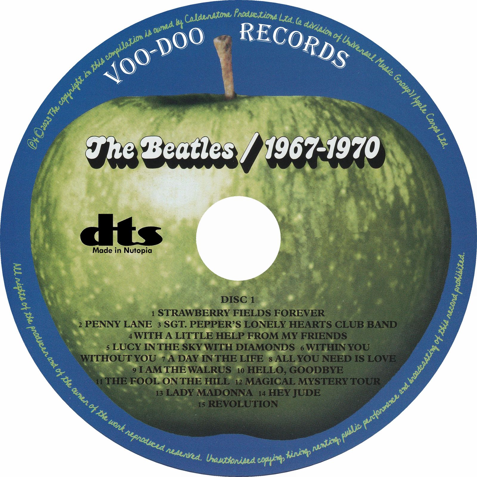 Here is the Beatles classic "Blue Album" (also known as 1967-1970) as you've never heard it before! This set contains the 2023 Atmos mixes in 5.1 surround on two DTS-encoded CDs. As an added bonus, nine songs were added to the original LP line-up, to take an already perfect album and make it even better! As such, this is the perfect summation of the "mature" era (post-psychedelic) Beatles, from their first single of 1967 (Strawberry Fields Forever), to their final single (Now And Then). As mentioned, these are all mixed into 5.1 surround, placing the listener right in the middle of the most incredible transformation pop music has ever witnessed. NOTE: YOU MUST HAVE DTS-COMPATIBLE EQUIPMENT (receiver, disc player, speakers) to hear the surround mixes on these discs. If not, they will only play static as DTS signals must be properly decoded to be heard. But for those who have the proper equipment, these discs will sound absolutely incredible. Especially the 'Abbey Road'-era material, which has never been heard with such clarity and presence before. If you are a Beatles fan (or just a fan of good surround music in general) and have DTS-compatible equipment, these discs (and the companion "Red Album" 2-CD set, which covers 1962-1966) are a must. Needless to say, they make the perfect gift for any fan who has the proper equipment.