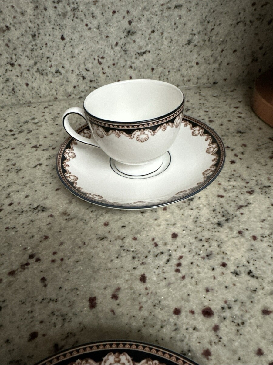 Wedgwood Medici R 4588 Bone China England Teacup and Saucer 3.2" x 2.6" tall