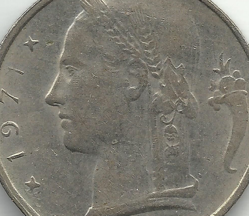 (1) 1971 BELGIQUE (belgium) 5 FRANC COIN. THIS 5 FRANC BELGIQUE IS A COIN WITH A DENOMINATION OF 5 FRANCS ISSUED IN 1971 THIS COIN WAS PRODUCED IN BOTH FRENCH (belgique) AND DUTCH (belgie) LEGEND VERSIONS. MADE OF COPPER-NICKEL, WITH A WEIGHT OF ABOUT 6 GRAMS.THE OBVERSE FEATURES THE LAUREATE HEAD OF CERES, THE ROMAN GODDESS OF HARVEST, FACING LEFT, WITH TWO SMALL DIAMONDS FLANKING THE DATE 1971 AND THE ENGRAVER MARCEL RAU'S INITIALS. THE REVERSE SHOWS A CROWNED OAK BRANCH FLANKED BY THE DENOMINATION 5 FRANCS AND THE COUNTRY NAME BELOW, IN THIS CASE BELGIQUE (french). THIS COIN WAS MINTED FROM 1948 UNTIL 1981 AND DEMONETIZED IN 1987. YOU WILL RECEIVE ONE (1) NEW, AS PICTURED, SHIPPED BY USPS....