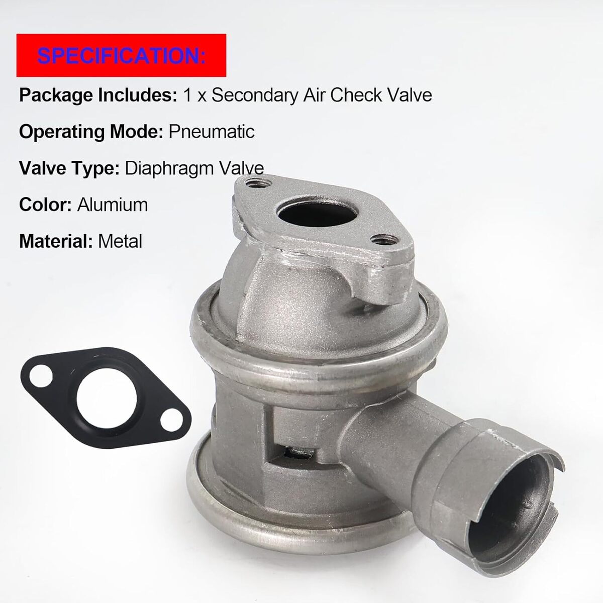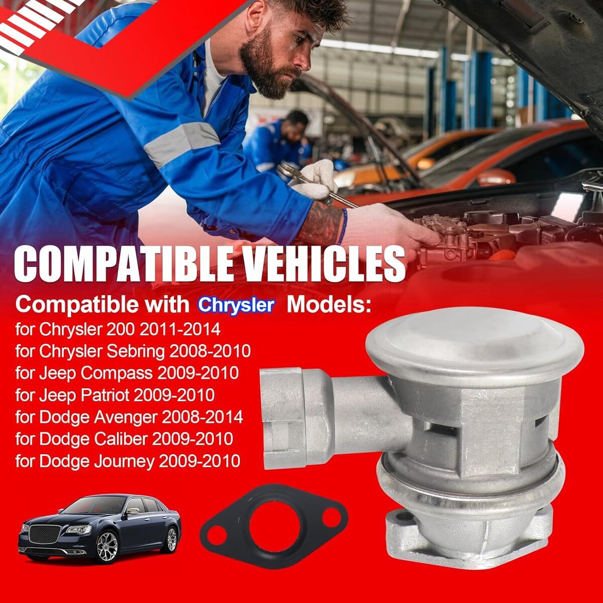 Vehicle Fitment: The Secondary Air Check Valve is compatible with Chrysler 2.4L Models like: for Chrysler 200/ Sebring 2008-2014; for Jeep Compass/ Patriot 2009-2010; for Dodge Avenger/ Caliber/ Journey 2008-2014 OEM / Interchange Numbers: 162092, 6804231AA, 00K68042314AA, 68042314AA. Please check your replacement OE number or model Direct Replacement: Manufactured with the high-quality material and cooperated with CNC for prolonged life and fitment accuracy. OEM direct replacment. Specification: Package Includes 1 x Secondary Air Check Valve | Main Material: Alumium | Valve Type: Diaphragm Valve After-sale Service: Enjoy 30-Day free return and 12-month warranty, making your purchase completely risk-free