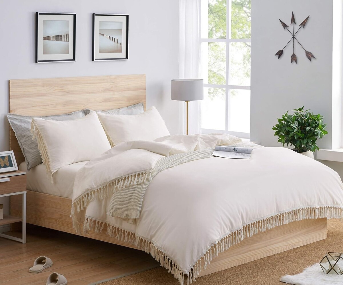 Bohemian Boho Chic Ivory Macrame Tassel 3 pc. Queen Duvet Cover Set Fringe Indie
