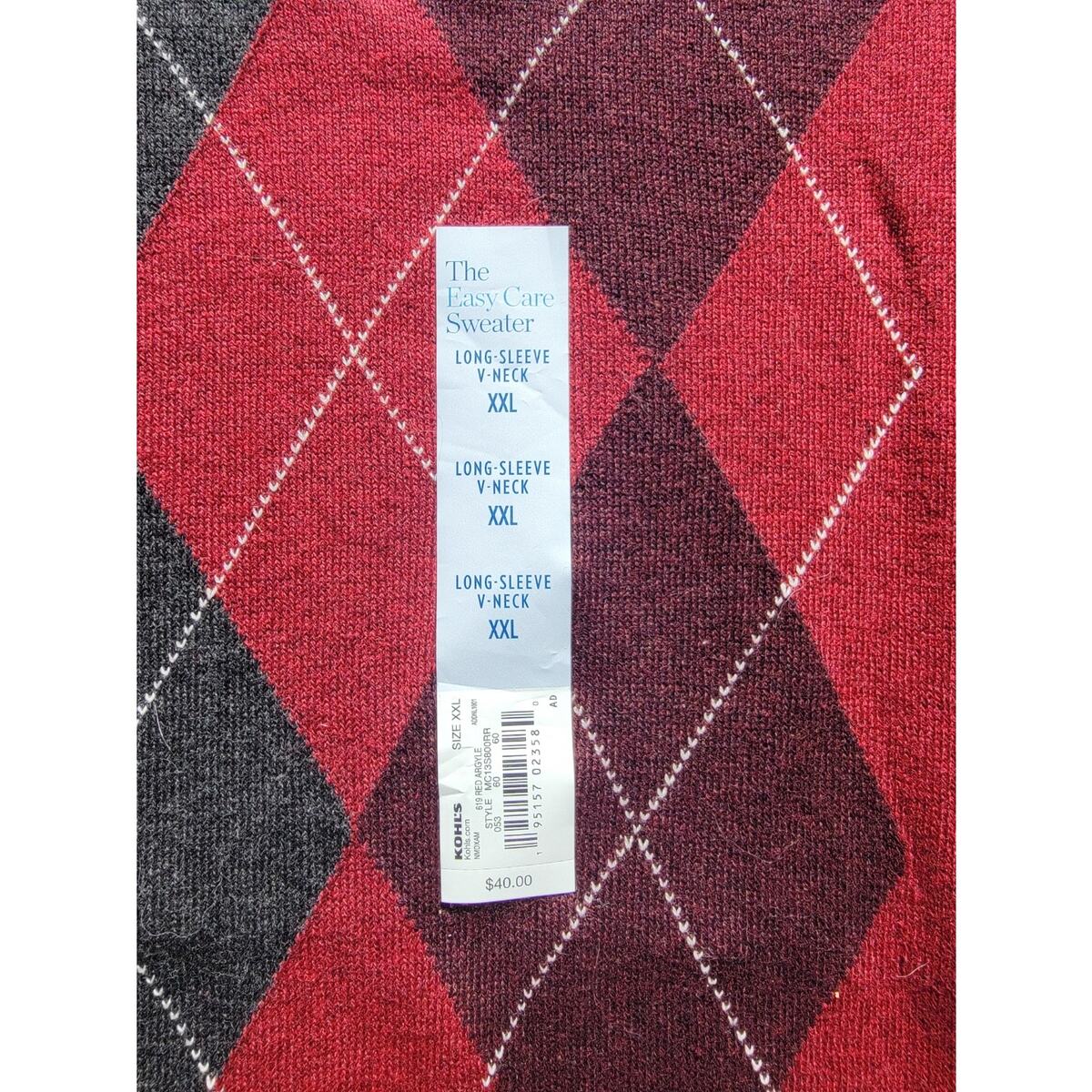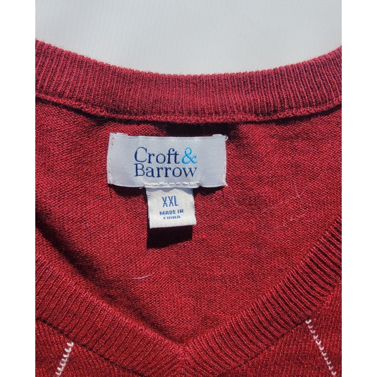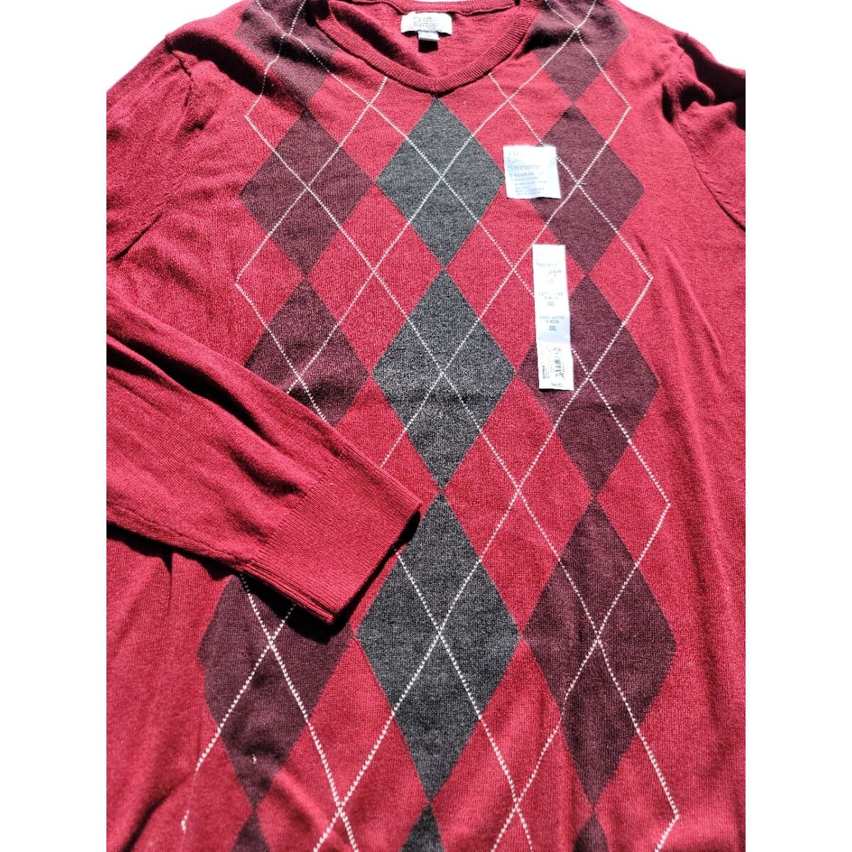Apt. 9 Merino Wool Maroon Argyle V-neck Sweater Men’s Size XXL New