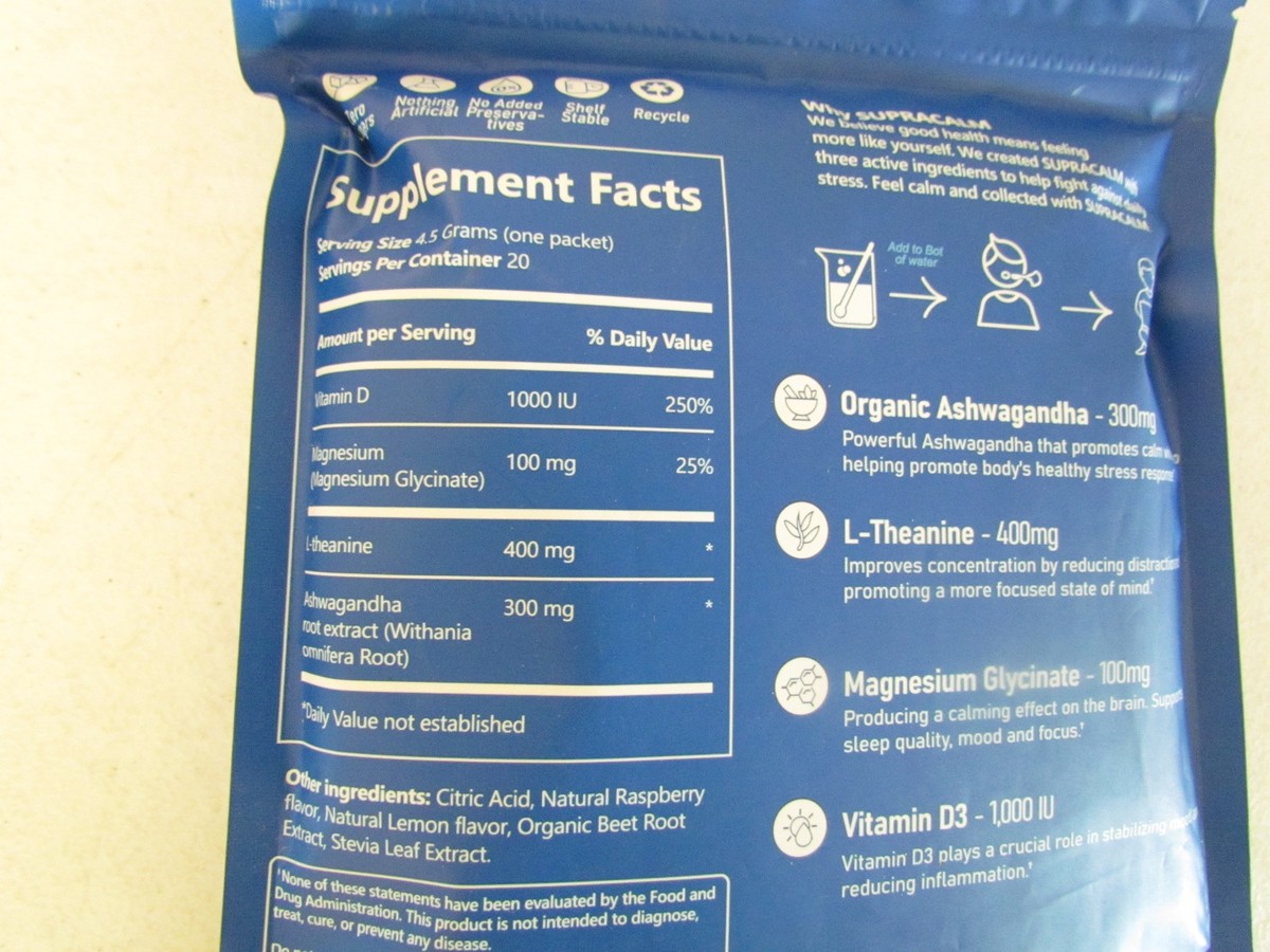 Supracalm 20 Packets Raspberry Lemonade Drink Mix Relax Focus No Sugar Exp 7/26