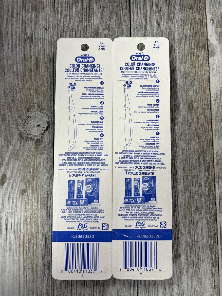 (2) Oral-B Kid's Manual Toothbrush Color Changing Extra Soft 2 Count Ages 3+