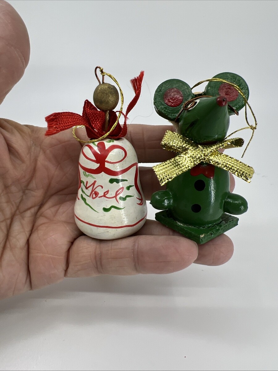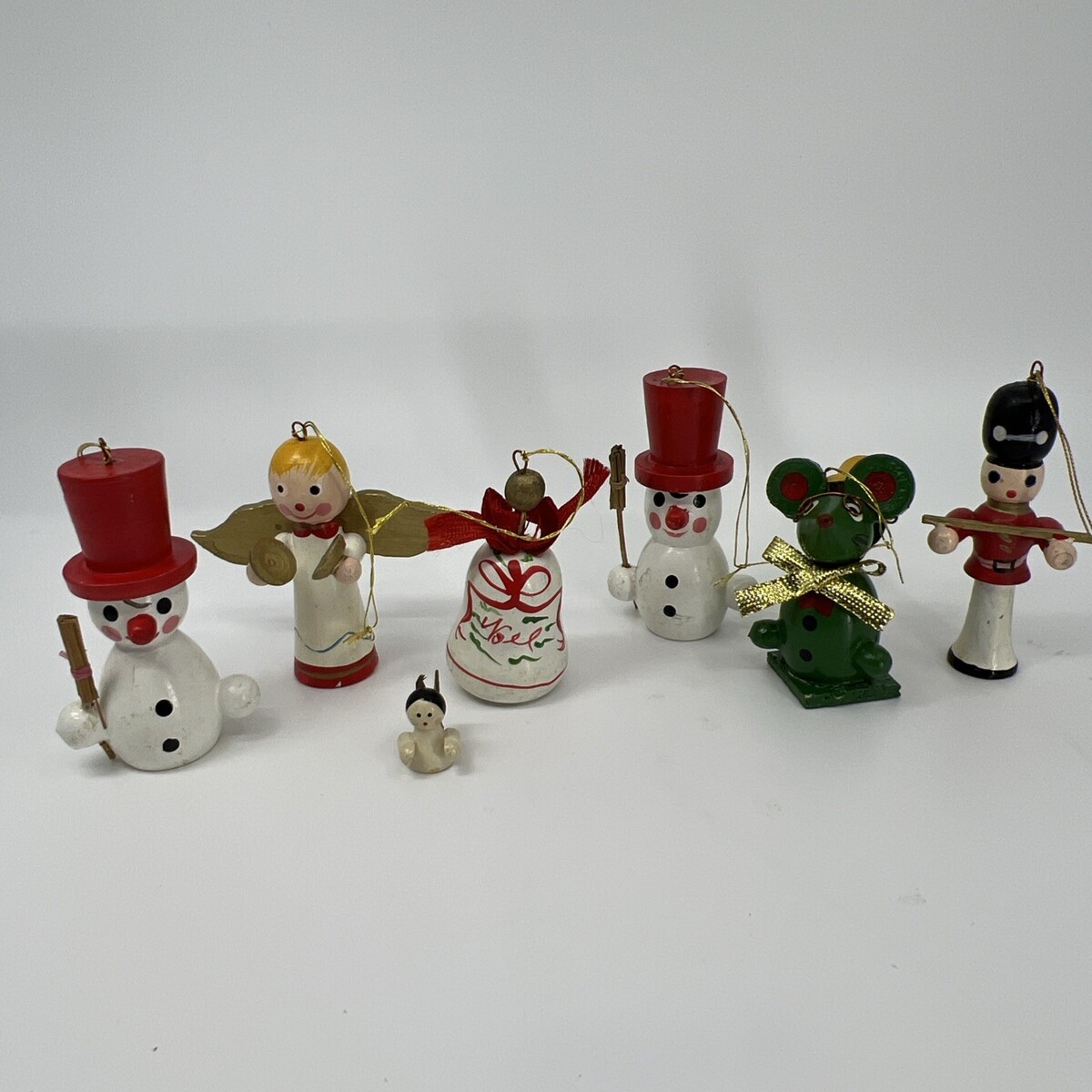 Vintage Lot 7 Wooden Christmas Ornaments Snowman Mouse Angel Solider Multicolor