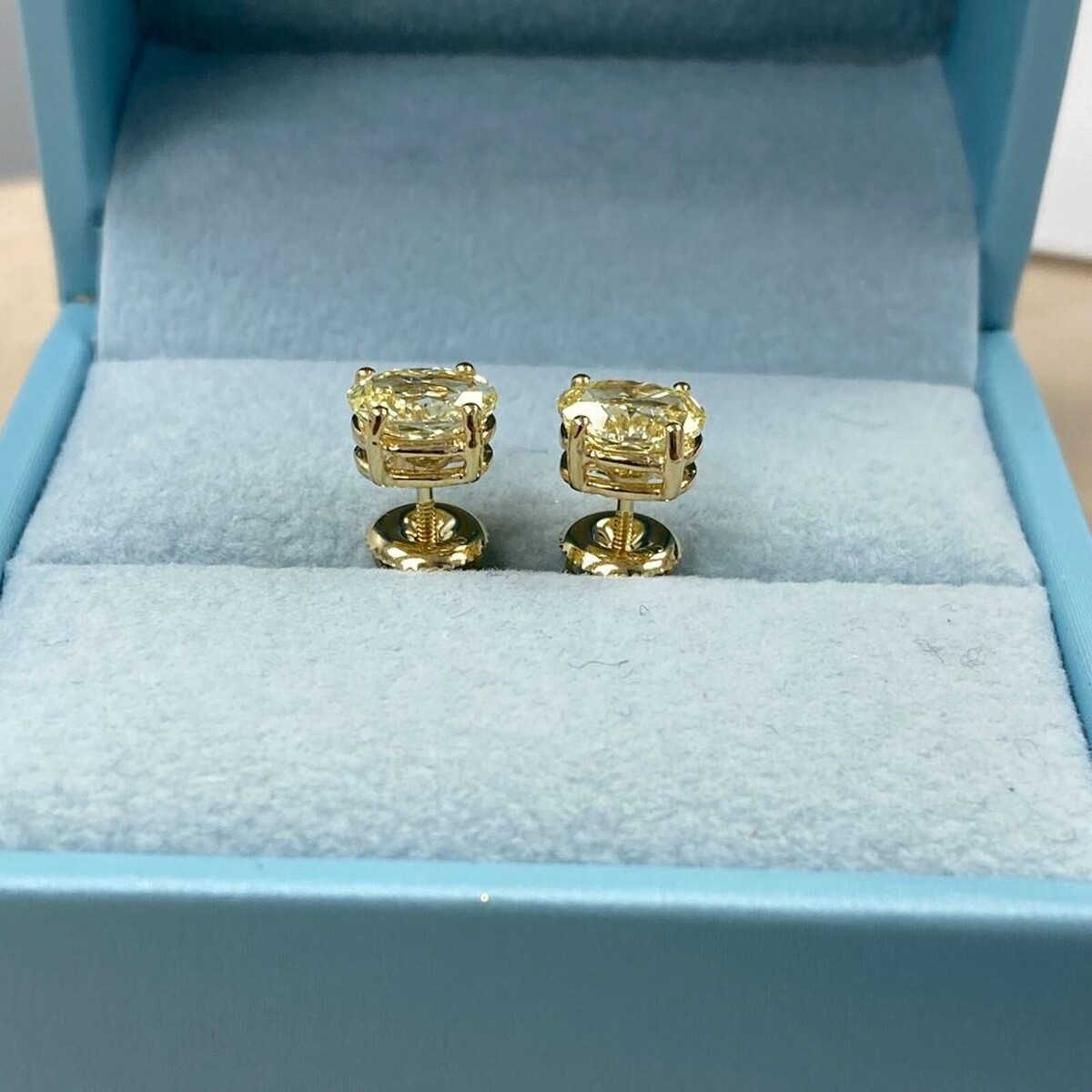 IGI 2.25 Carat Lab Grown Oval Fancy Yellow Diamond Stud Earrings 14k yellow Gold