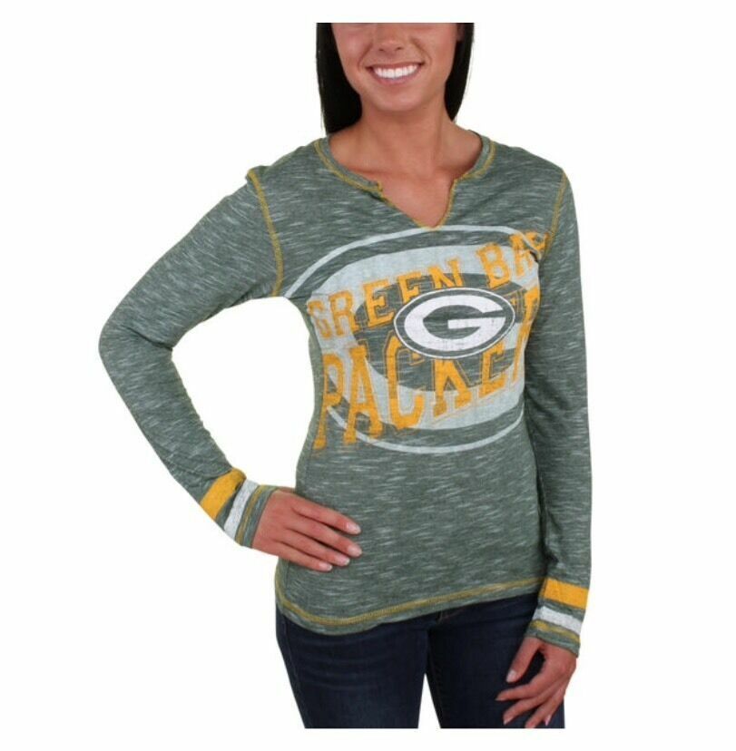 This is for a brand new with tags Majestic Women's Green Bay Packers Gametime Gal Slubbed Top Long Sleeve Tee