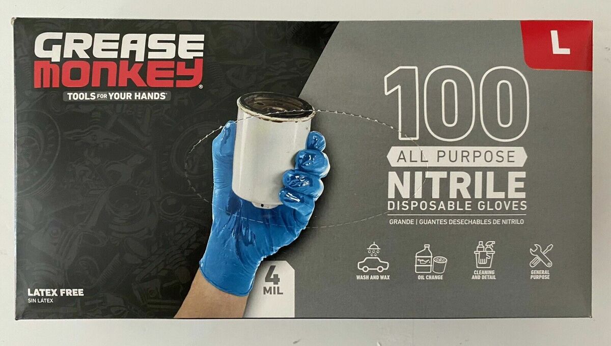 This is for a brand new box of Grease Monkey Disposable Nitrile Gloves (100-Count) L or XL Latex Free Not for Medical Use