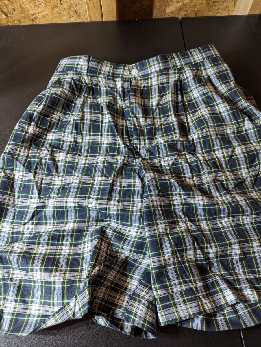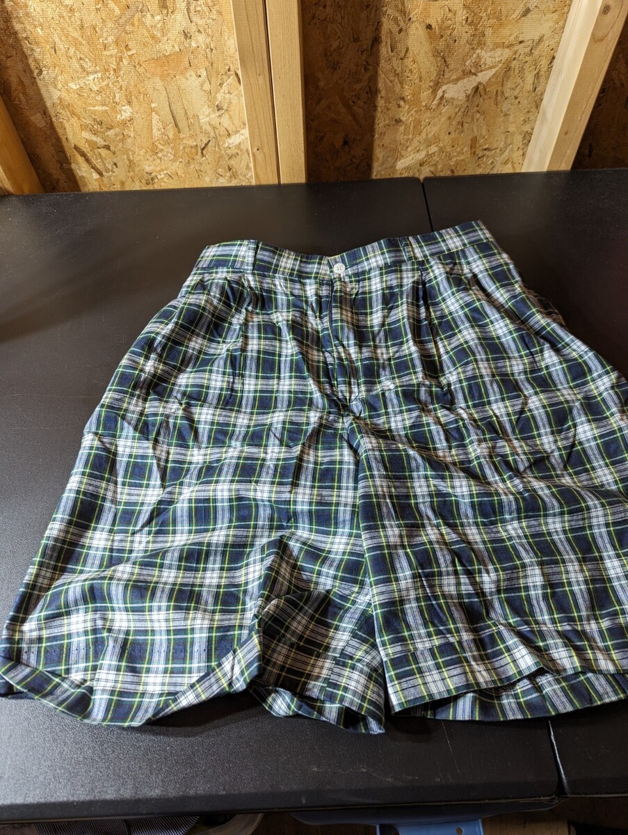 The multicolor plaid pattern and button closure make these shorts a stylish choice for any occasion. They are easy to care for, as they should be hand washed only. These Bermuda shorts are a size 12 with a waist size of 30 inches, and are perfect for any woman who wants to look and feel great.
