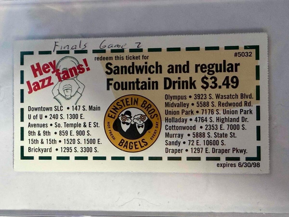 1998 NBA Finals Bulls Jazz Michael Jordan Game 2 Ticket Stub J