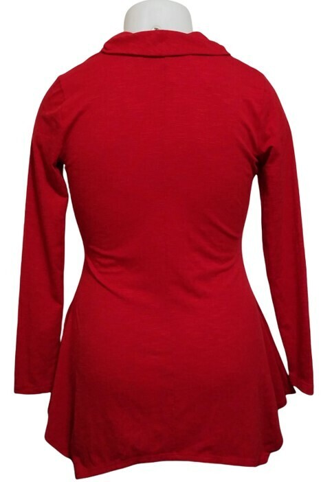 NY Collection Asymmetrical Scarlet Sage Cowl-Neck Women Long Sleeve Blouse (S)