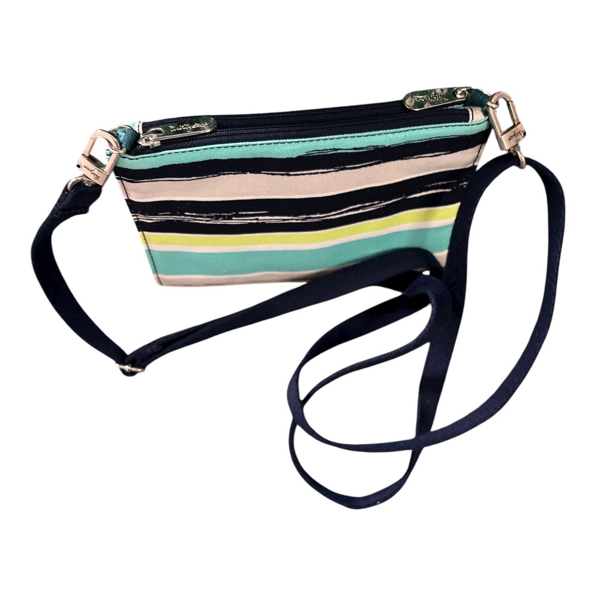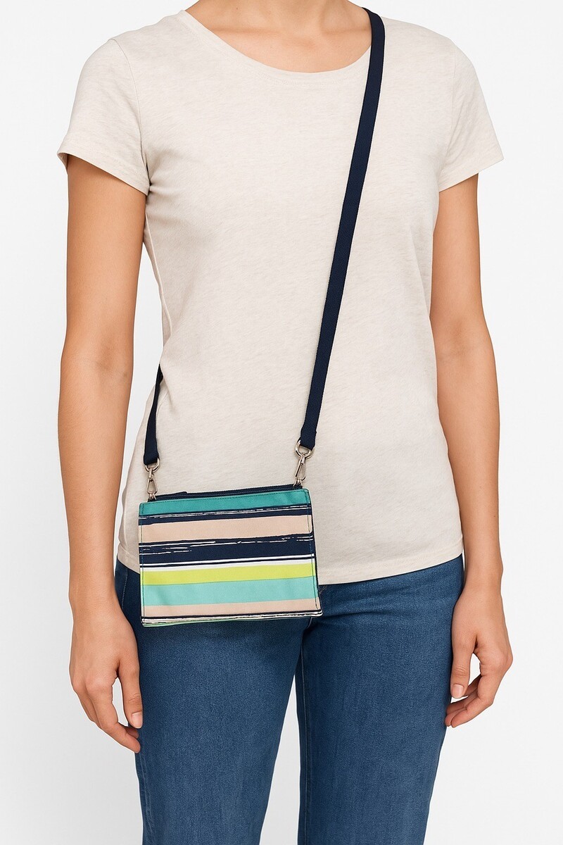 Thirty-One Striped Crossbody Wallet Purse Navy Aqua Lime Travel Organizer
