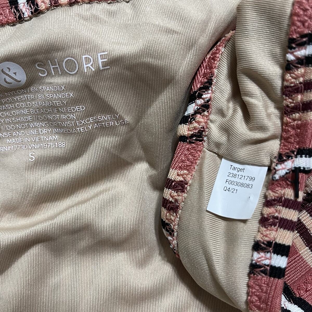 Shade Shore Cheeky Bikini Bottom in Brown Peach Stripe Size S features: