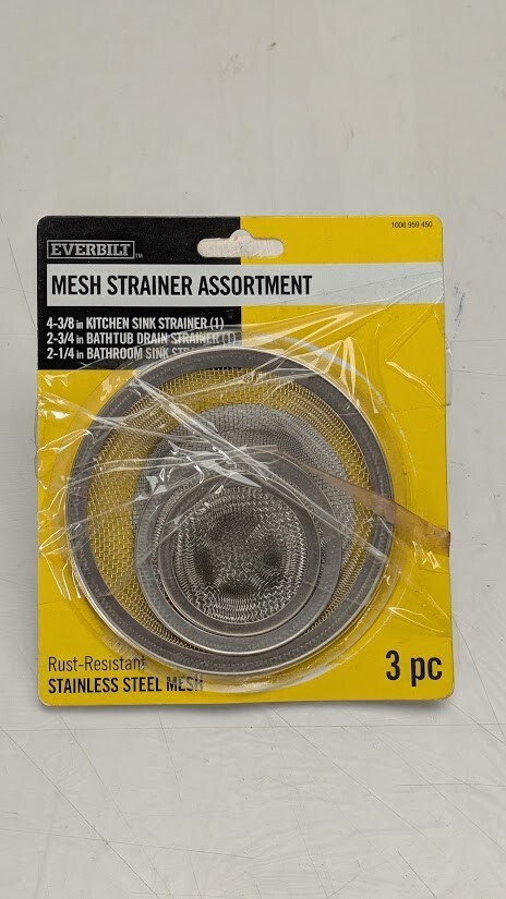 Everbilt mesh strainers help prevent clogs by catching foreign objects and debris. Made of stainless steel these mesh strainers are durable and easy to clean. Mesh design allows continual water draining while securely holding solids.