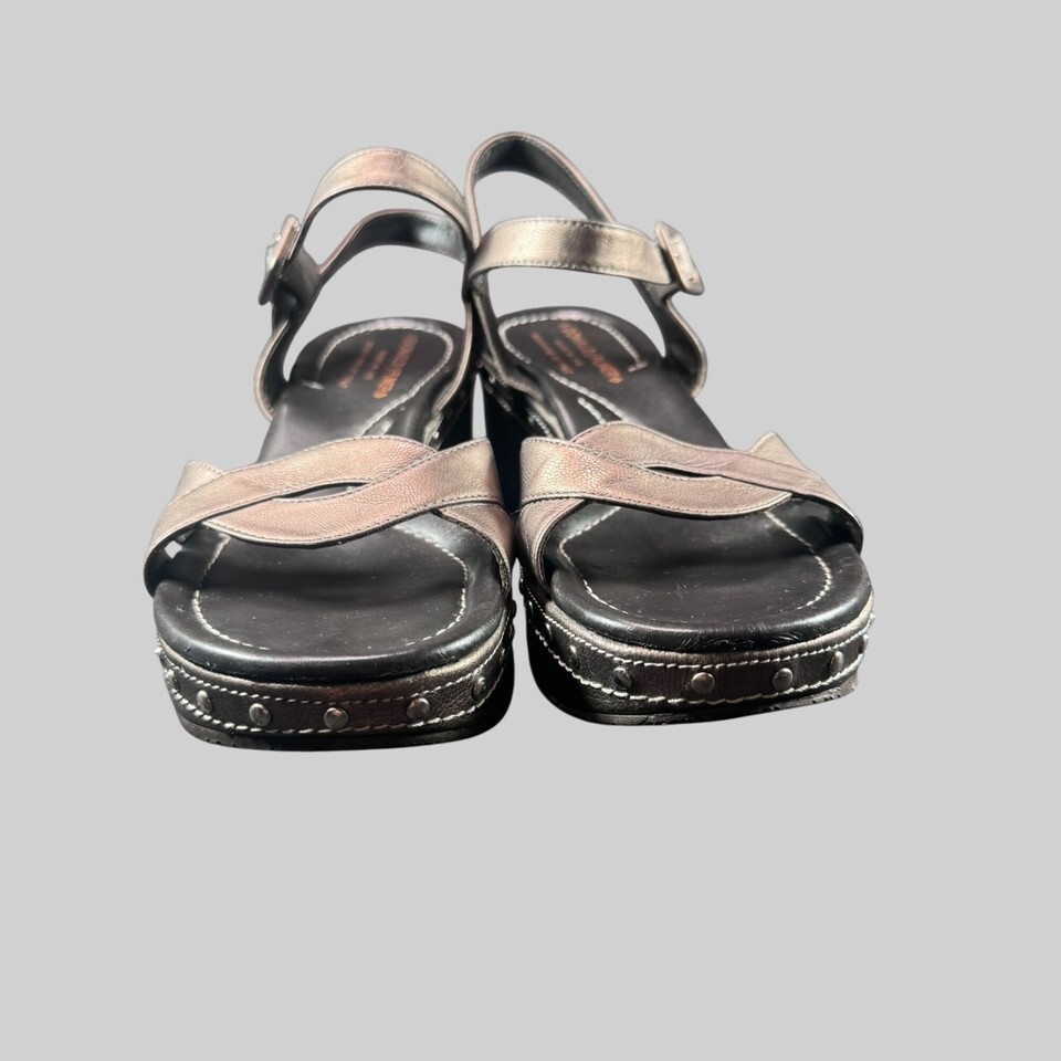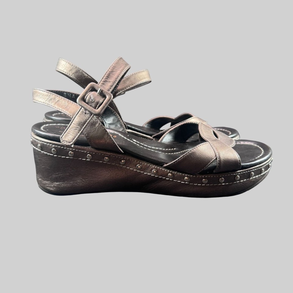 Step out in style with the Donald Pliner Sha Wedge Sandal. This copper brown sandal features a chic wedge heel, perfect for casual or dressy occasions. Comfort and elegance combined in a size 6.5M.