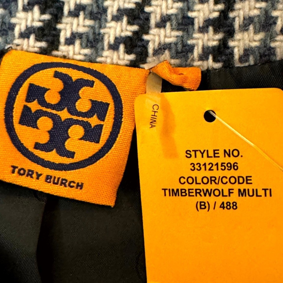 Tory Burch Houndstooth Wool Blend Coat Timberwolf Multi Size 12 NWT $695 Retail