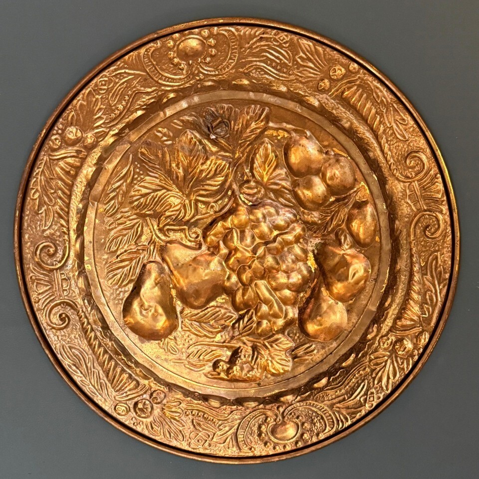 Vintage Italian Embossed Brass Wall Plate 14" Fruit & Grapes Milano Decor Art