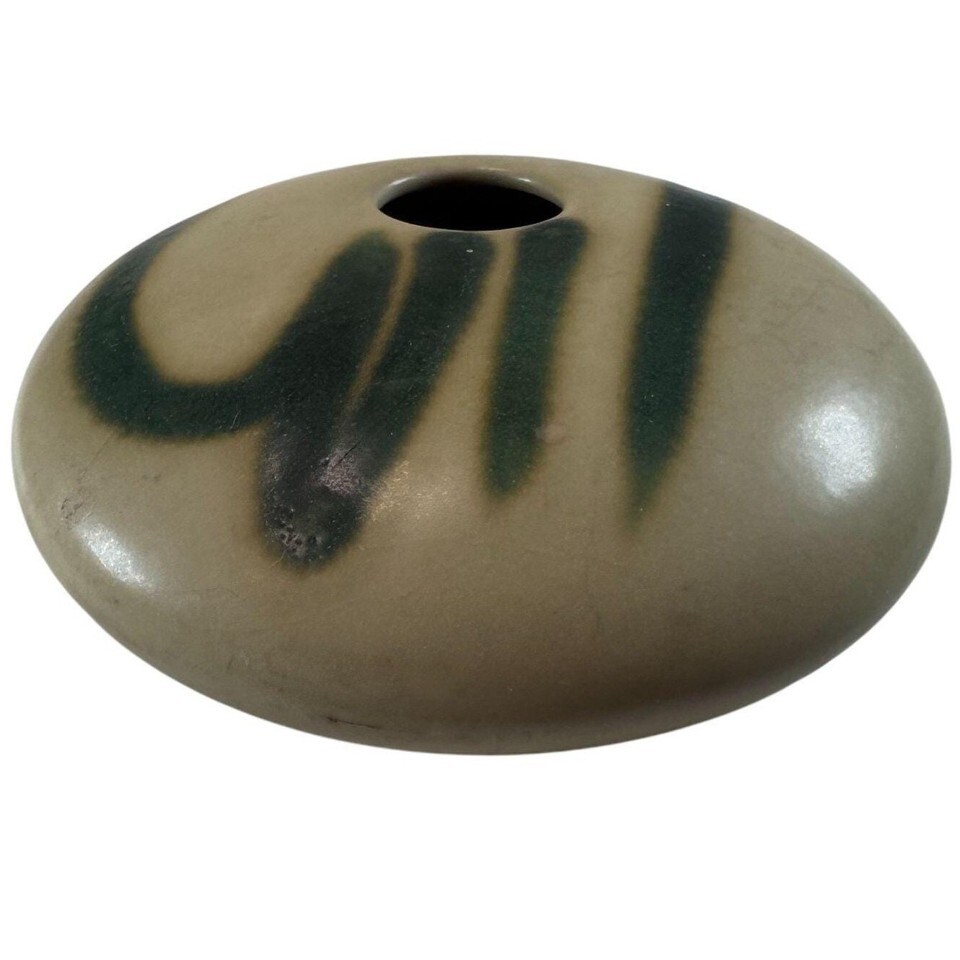 Coyote Roadhouse Studio Pottery Ikebana Vase Mid-Century Style Taupe Green Glaze