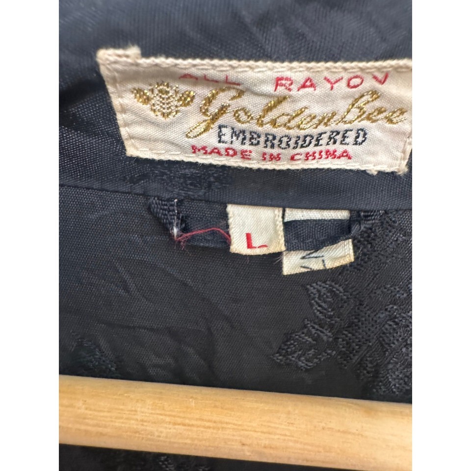 Vintage Golden Bee Embroidered Dragon Kimono Robe Black Rayon Floral Sz L