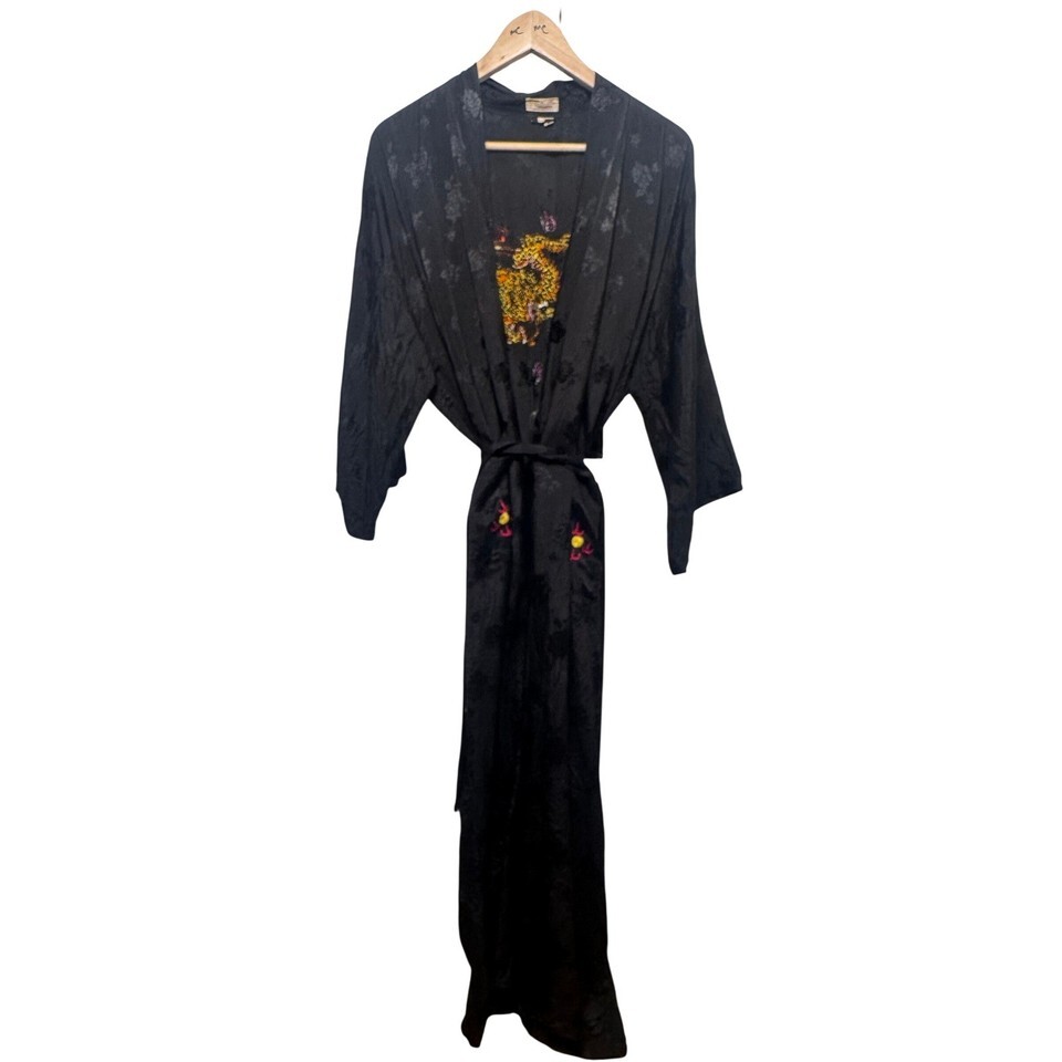 Keywords: kimono, robe, dragon, embroidered, vintage, black robe, rayon, floral, lounge wear, golden bee, asian inspired, embroidered robe, boho