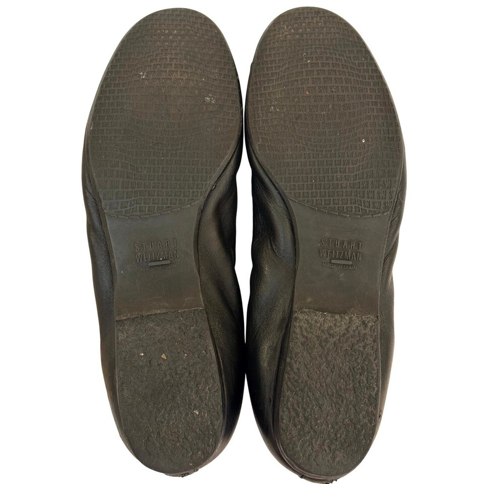 Stuart Weitzman A408874 Black Leather Elastic Ballet Flats Made in Spain Sz 8 M