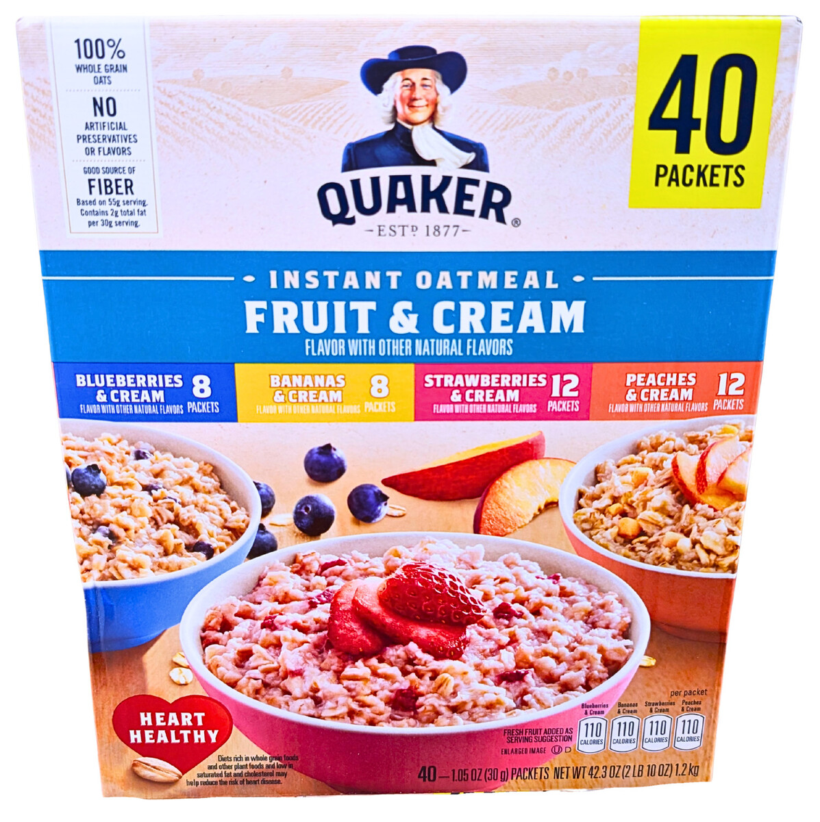 Quaker Instant Oatmeal Fruit & Cream Variety Pack 40 Packs x 1.05 Oz EXP 06/26