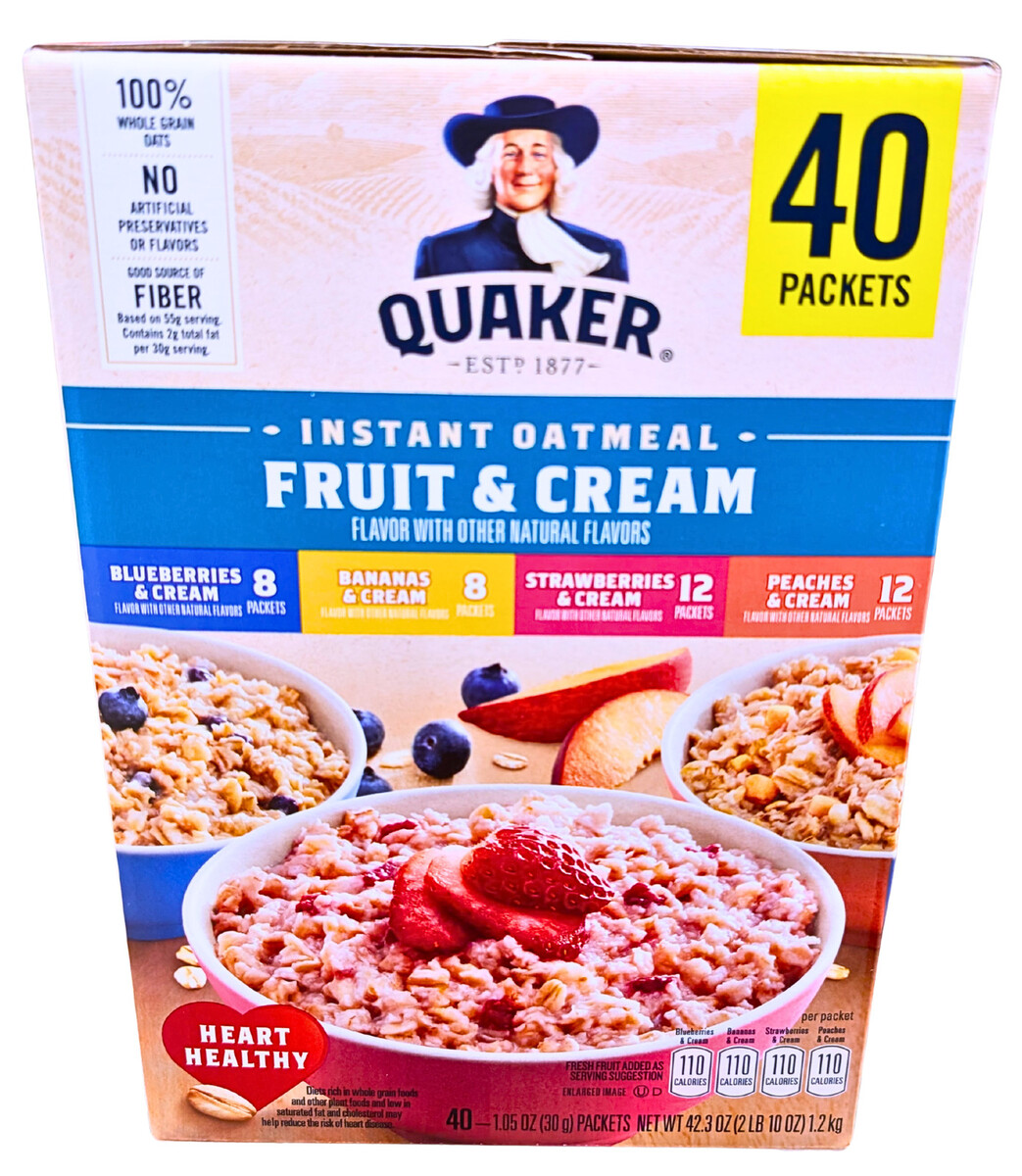 Quaker Instant Oatmeal Fruit & Cream Variety Pack 40 Packs |