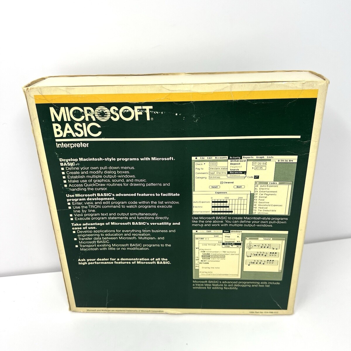 Microsoft BASIC Interpreter 2.0 for Apple Macintosh Empty Box And Manual No Disk