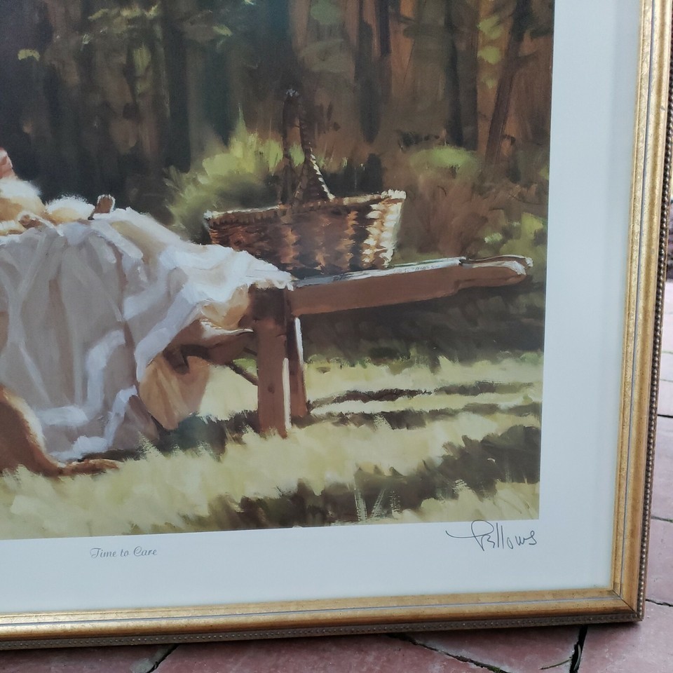 Fred Fellows Art Print Pioneer Woman with Cat A Time To Care Signed Lithograph
